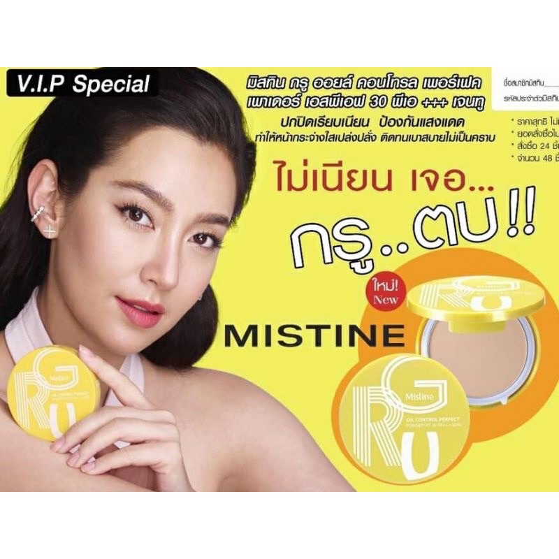 ‼️ใหม่แท้มิสทิน กรู ออยล์ คอนโทรล เพอร์เฟค เพาเดอร์ SPF 30 PA +++ เจนทู MISTINE GRU OIL CONTROLหมดอายุปี2027