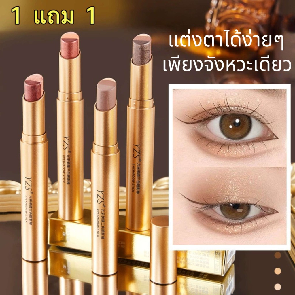( 1 แถม 1 ) แท่งอายแชโดว์สามสี, ความงามที่เปล่งปลั่ง, กลิตเตอร์ไล่โทนสี, ปากกาอายแชโดว์สามสีหนึ่งเช็ด,