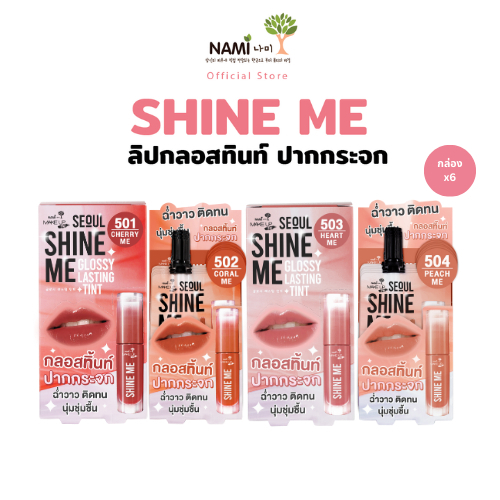 ( ยกกล่อง x 6 ซอง ) Nami ลิปกลอส Make Up Pro Seoul Shine Me Glossy Lasting Tint 2 กรัม