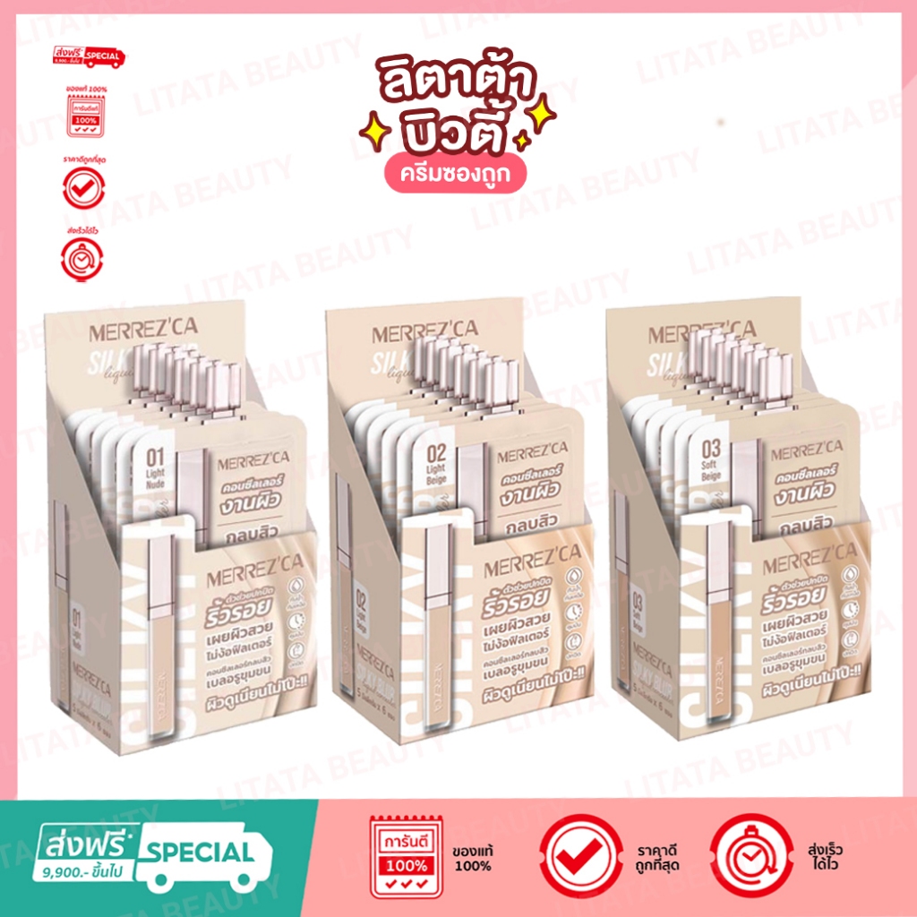 ( กล่อง x6ซอง ) Merrez’ca คอนซีลเลอร์เนื้อแมตต์ ซิลกี้ เบลอ ลิควิด คอนซีลเลอร์ มี 3 เบอร์ให้เลือก