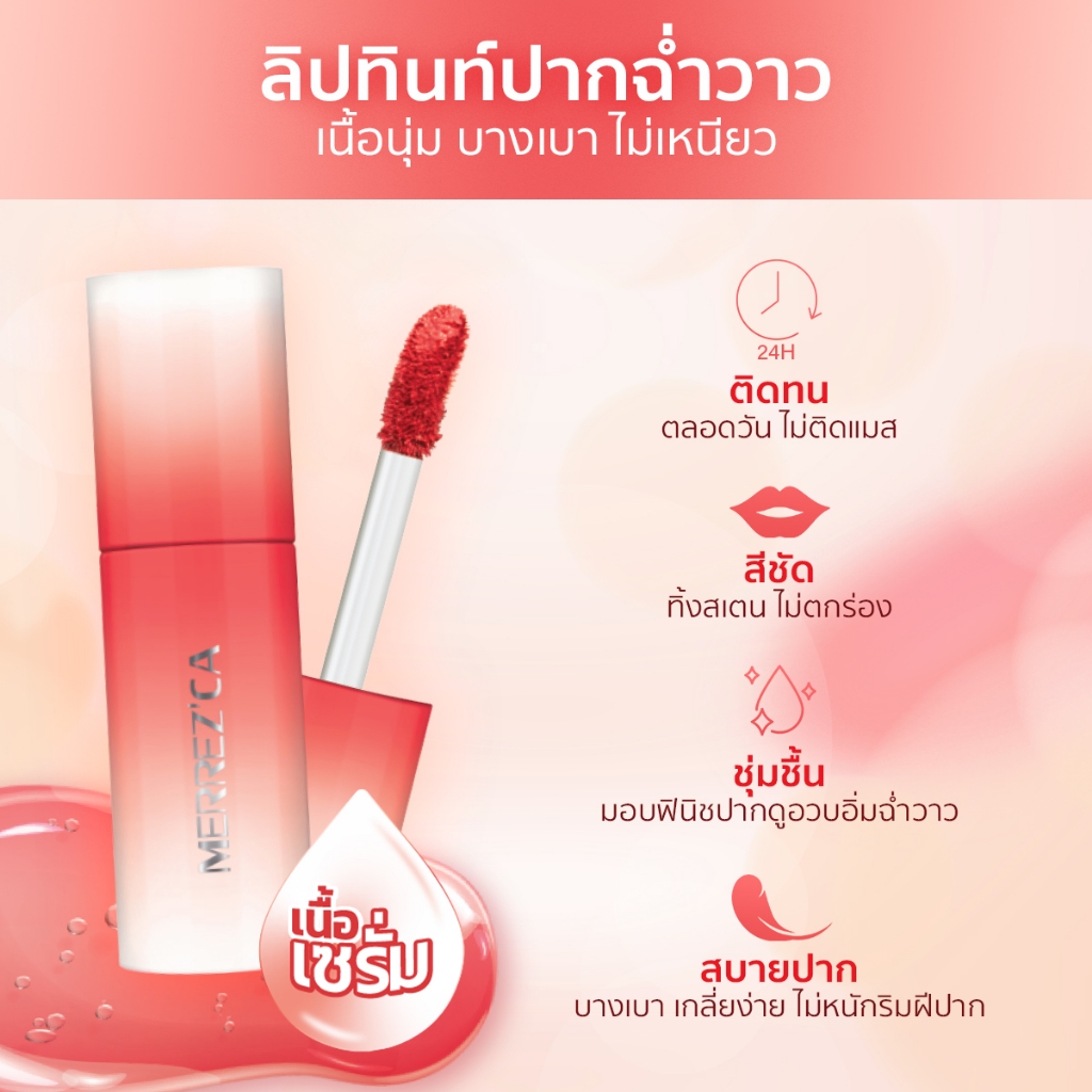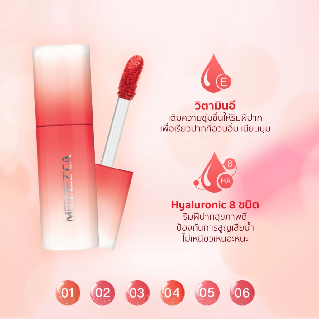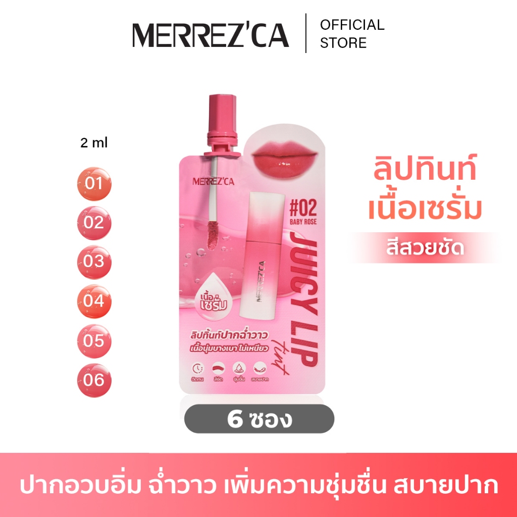 ( 6 ซอง ) Merrezca Juicy Lip Tint – Sachet ลิปทิ้นท์ปากฉ่ำวาว เนื้อนุ่ม บางเบา