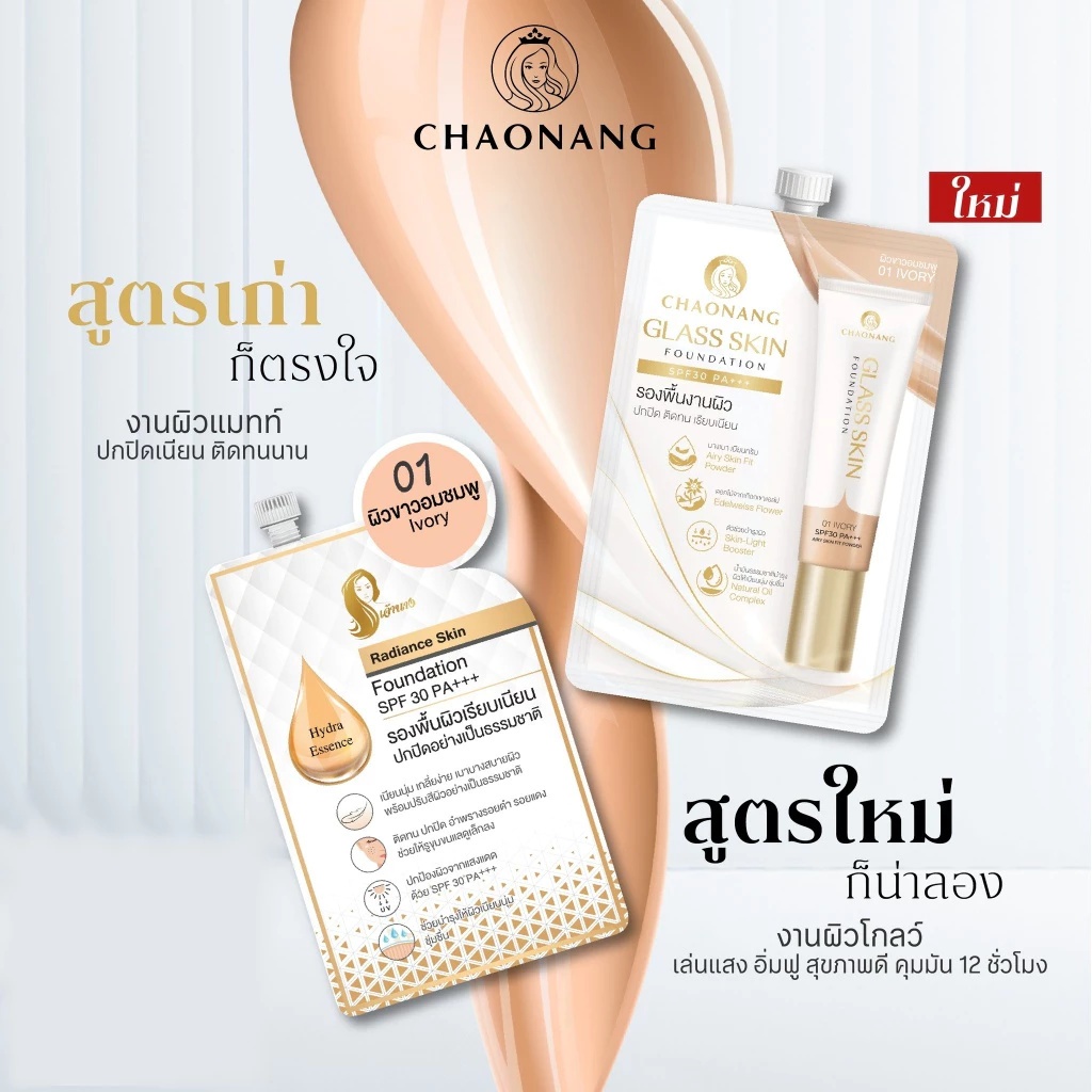 ( 1 ซอง) Chaonang glass skin Foundation รองพื้นเจ้านางกลาสสกิน ( ปริมาณ 5 กรัม)
