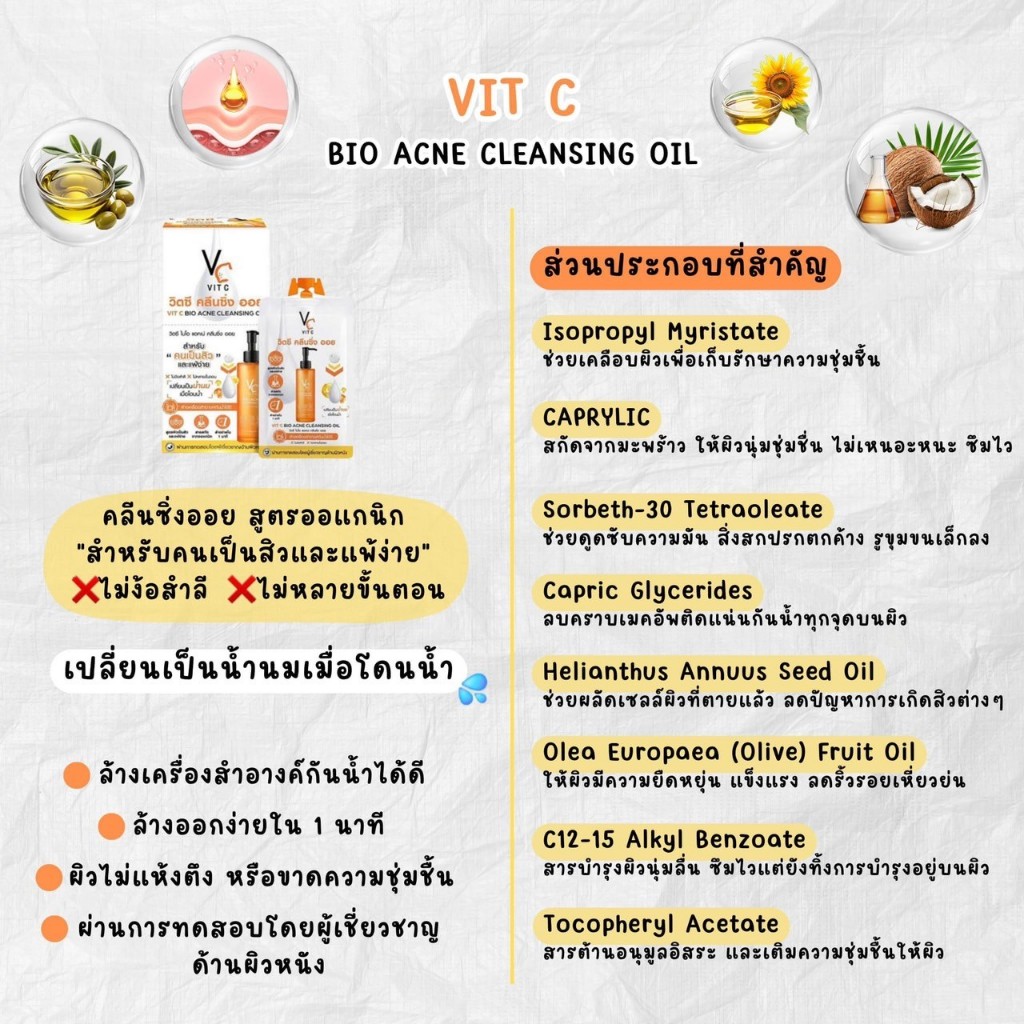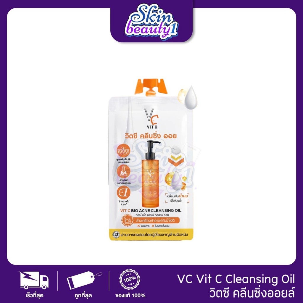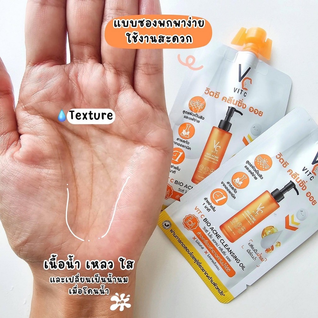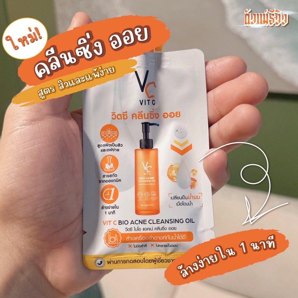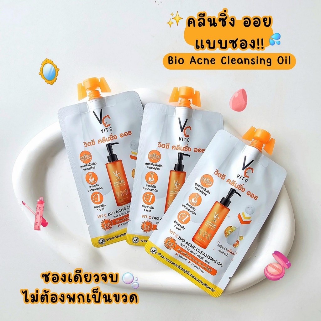 ((1 ซอง)) Acne Cleansing Oil VC Vit C Bio RATCHA แอคเน่ คลีนซิ่ง ออย ลบเครื่องสำอางค์ สิ่งสกปรก ขนาด 18 ml.