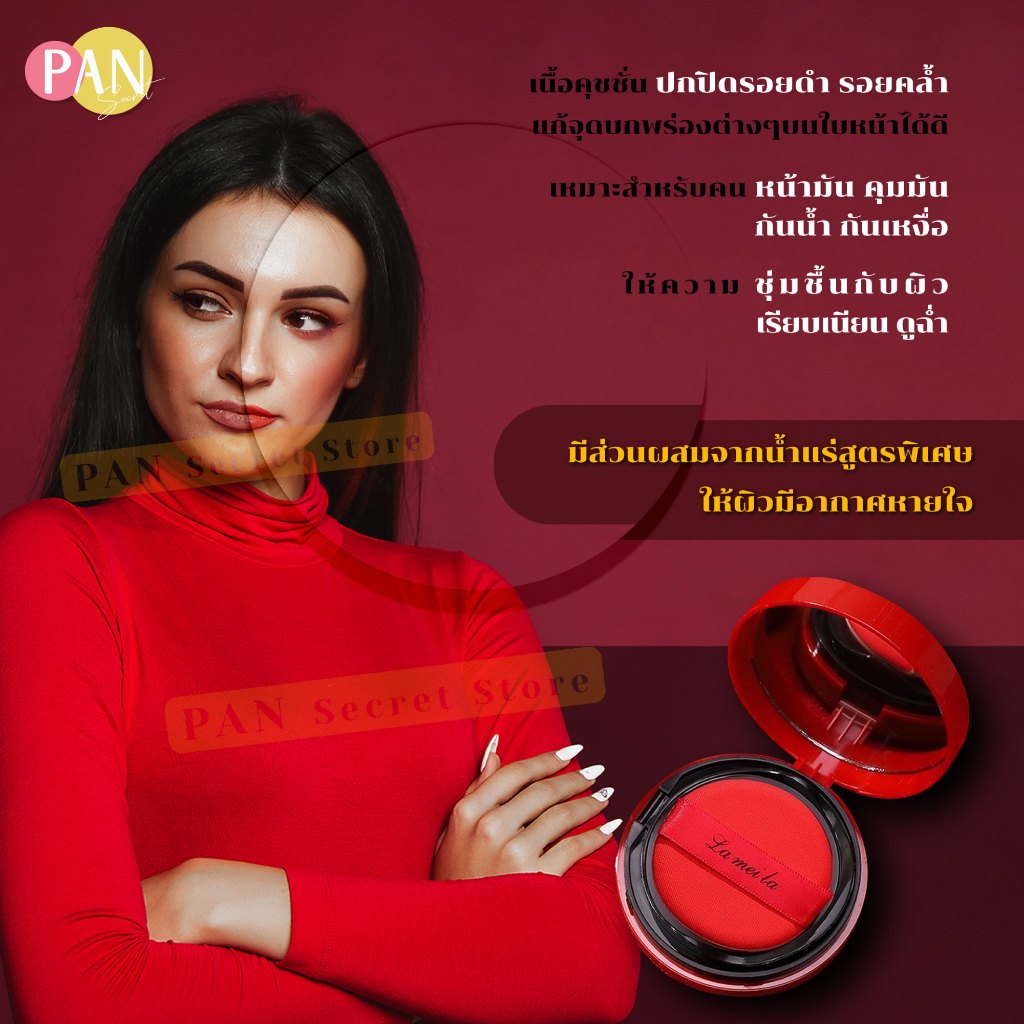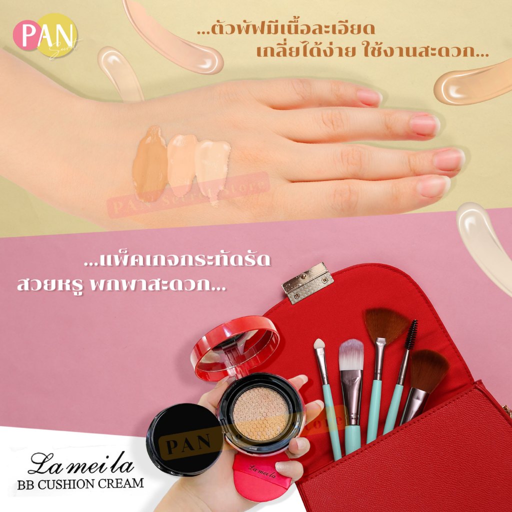( 1 แถม 1 ) BB Lameila บีบีครีมคุชชั่น (มีเลขจดแจ้ง) คุชชั่นแดง คุมมัน ปกปิด กันน้ำ