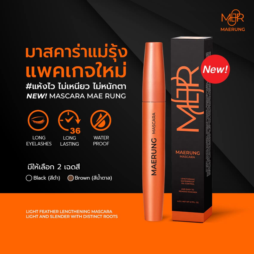(1แท่ง)ของแท้*MAERUNG MASCARA สีน้ำตาล และสีดำ แม่รุ้ง มาสคาร่า เนื้อไฟเบอร์กันน้ำ