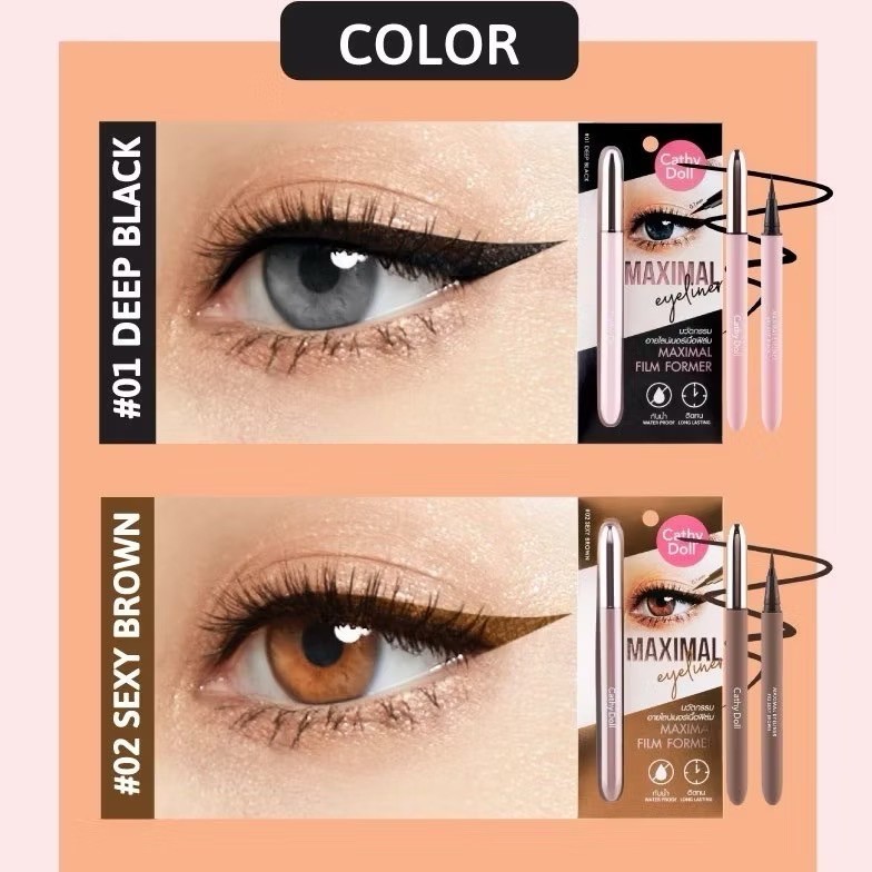 [ME09] Cathy Doll Maximal Eyeliner เคที่ดอลล์ แม็กซิมอล อายไลน์เนอร์ หัวเมจิก คุมมัน กันน้ำ กันเหงื่อ 0.7 ml. 2 สี