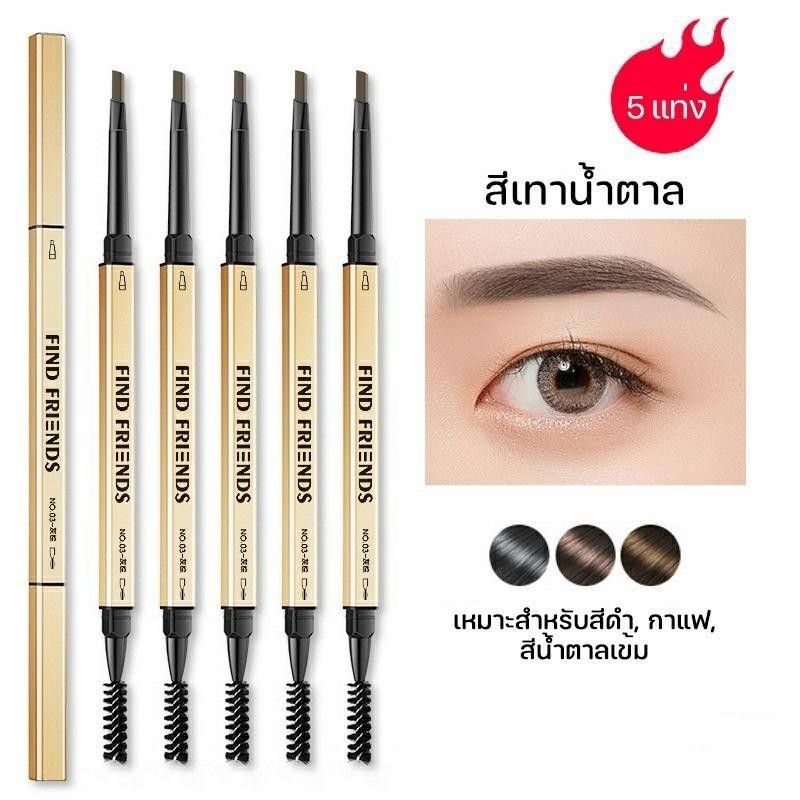 【ไอเทมฮอต】ดินสอเขียนคิ้ว 2 in 1 กันน้ำ พร้อมแปรง ติดทนนาน 1 ชิ้น มี 5 สีให้เลือก
