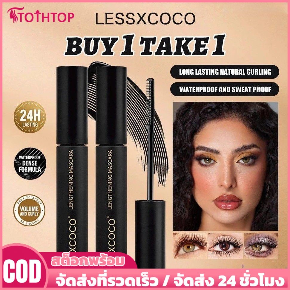 【ซื้อ 1 แถม 1】LESSXCOCO มาสคาร่าแบบโค้งยาว มุมกว้าง มาสคาร่ากันน้ำแบบโค้งยาว ติดทนนาน 36 ชม. มาสคาร่าหนา ยาว หนา ไม่เลอะ [ELLE2018] [TOP]