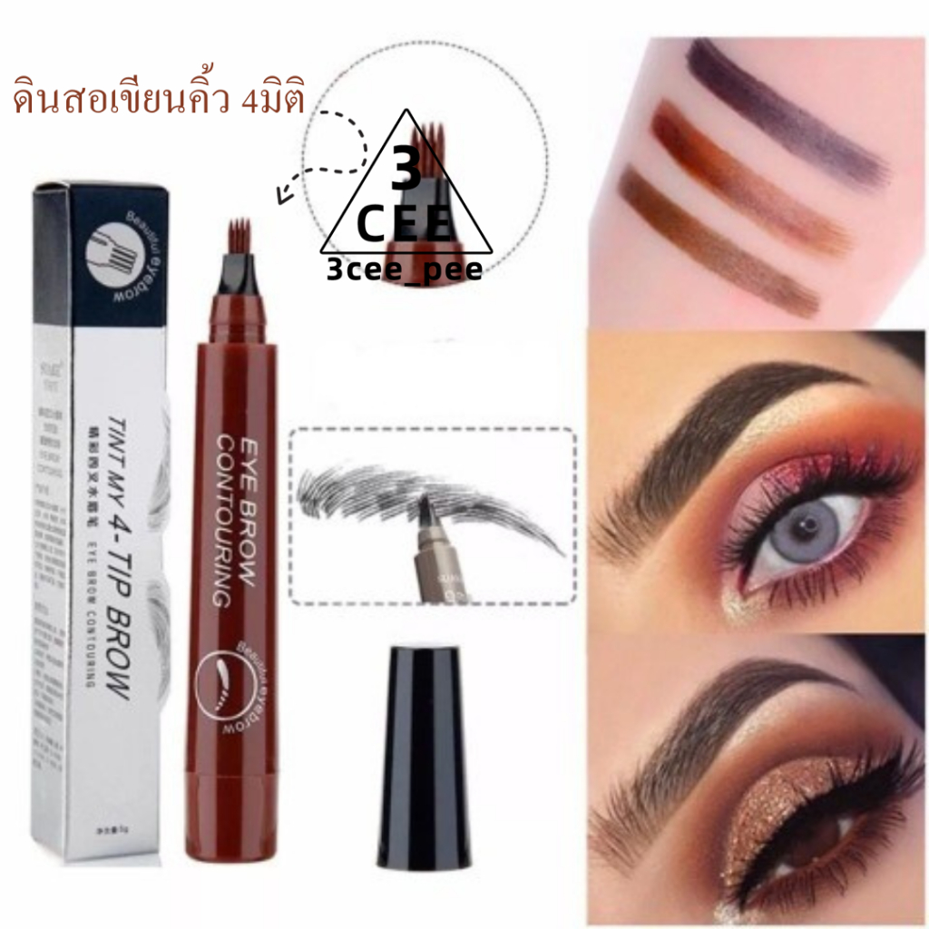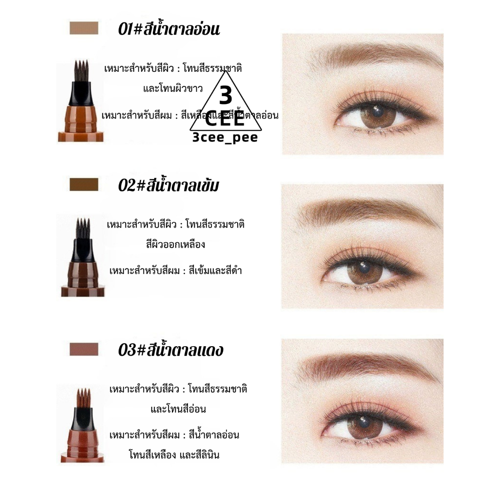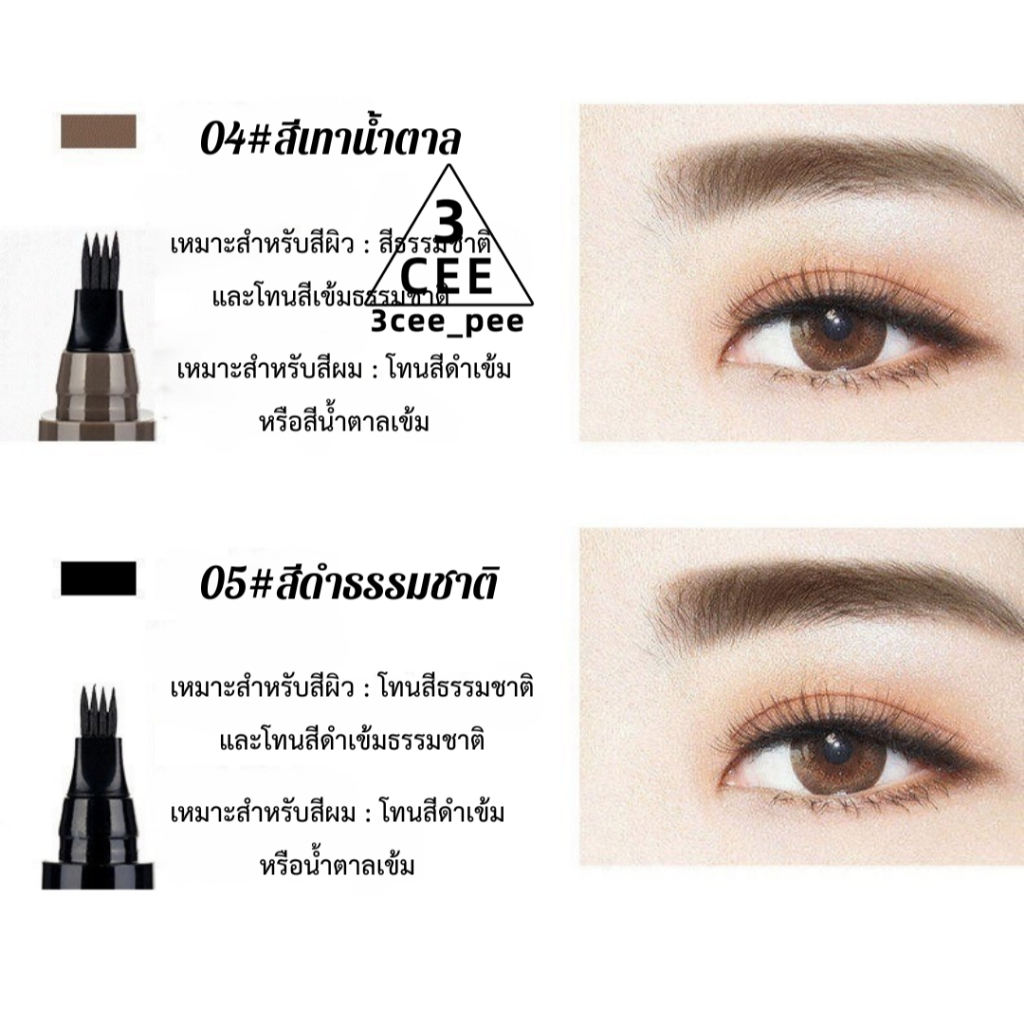 3CEE ดินสอเขียนคิ้ว หัวแปรงสี่แฉก กันน้ำ ติดทนนาน 4 ชิ้น พร้อมแปรงปัดคิ้ว เนื้อดี เขียนง่าย เส้นคม
