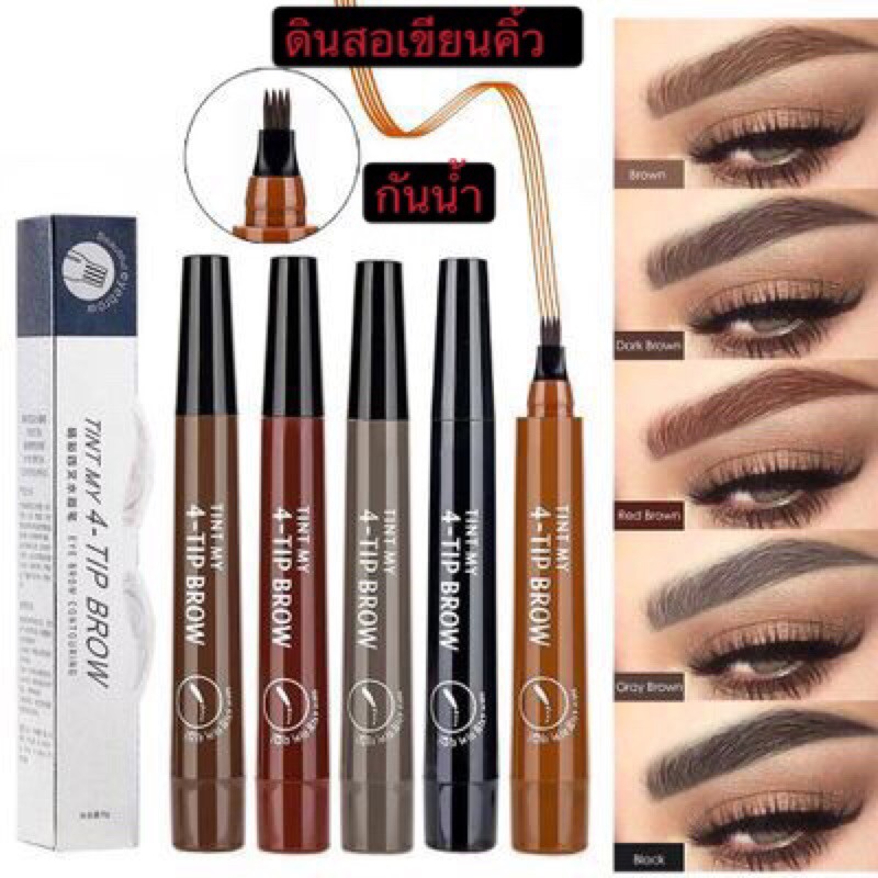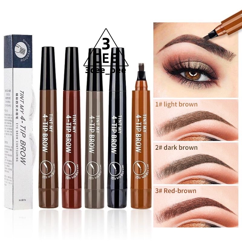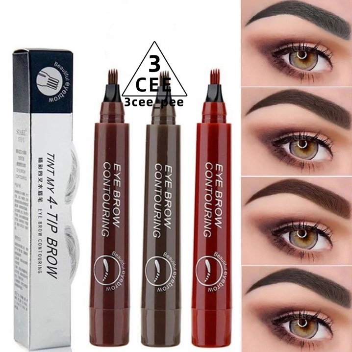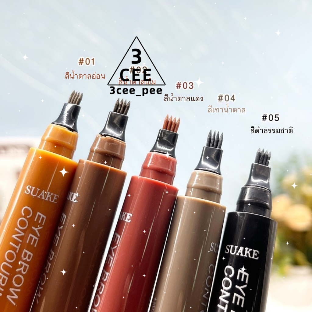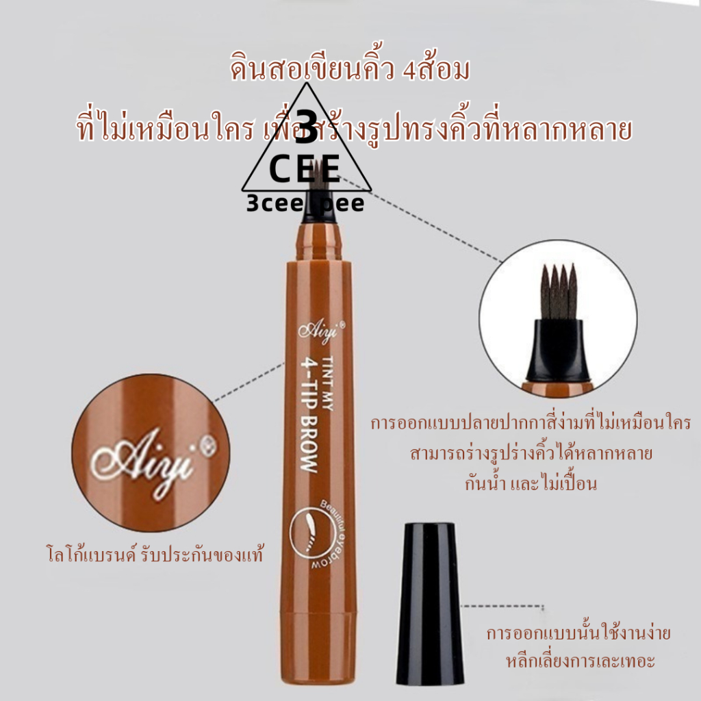 3CEE ดินสอเขียนคิ้ว หัวแปรงสี่แฉก กันน้ำ ติดทนนาน 4 ชิ้น พร้อมแปรงปัดคิ้ว เนื้อดี เขียนง่าย เส้นคม