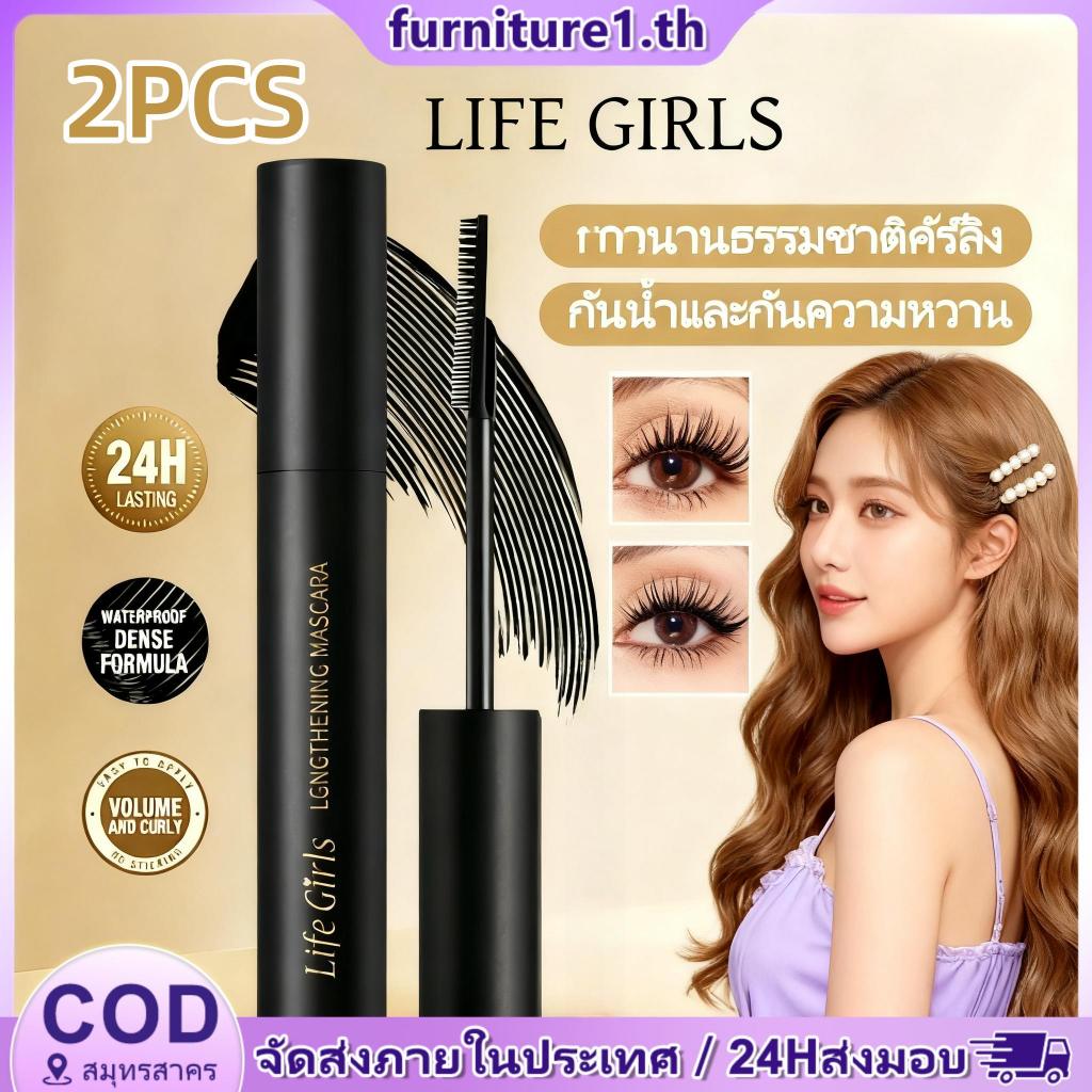 2PCS ชีวิตสาวกว้างมุมยาวมาสคาร่า, แห้งอย่างรวดเร็ว, กันน้ำ, การแต่งหน้าตาที่ยาวนาน