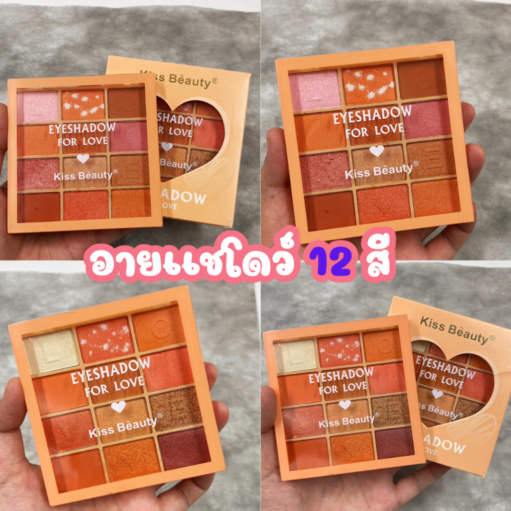 87115-03 อายแชโดว์ Kiss beauty for love 12สี โทนส้มอิฐ เนื้อเเมท สีชัด ติดทนนาน