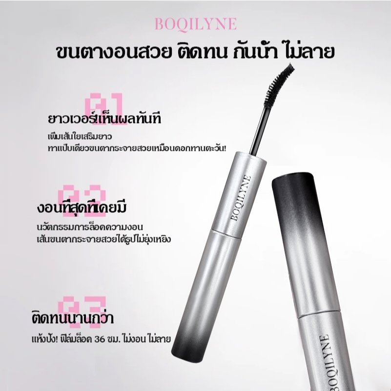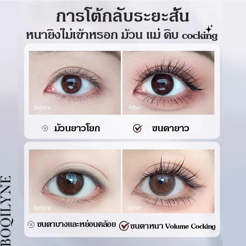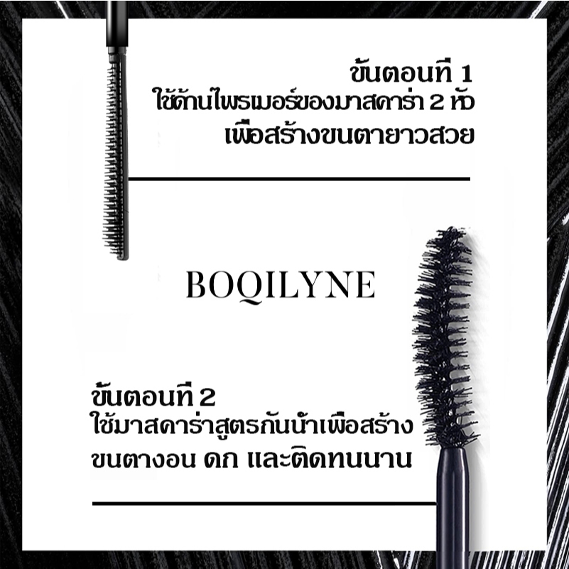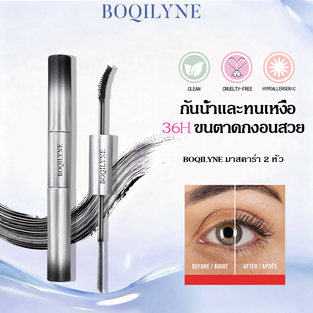 BOQILYNE โบกิลินน์ มาสคาร่าแบบสองหัวสูตรกันน้ําเพิ่มความหนาความยาวและองศาการดัดผมไม่หลุดไม่ละลายล็อครูปทรงธรรมชาติ (แบบทูอินวัน)