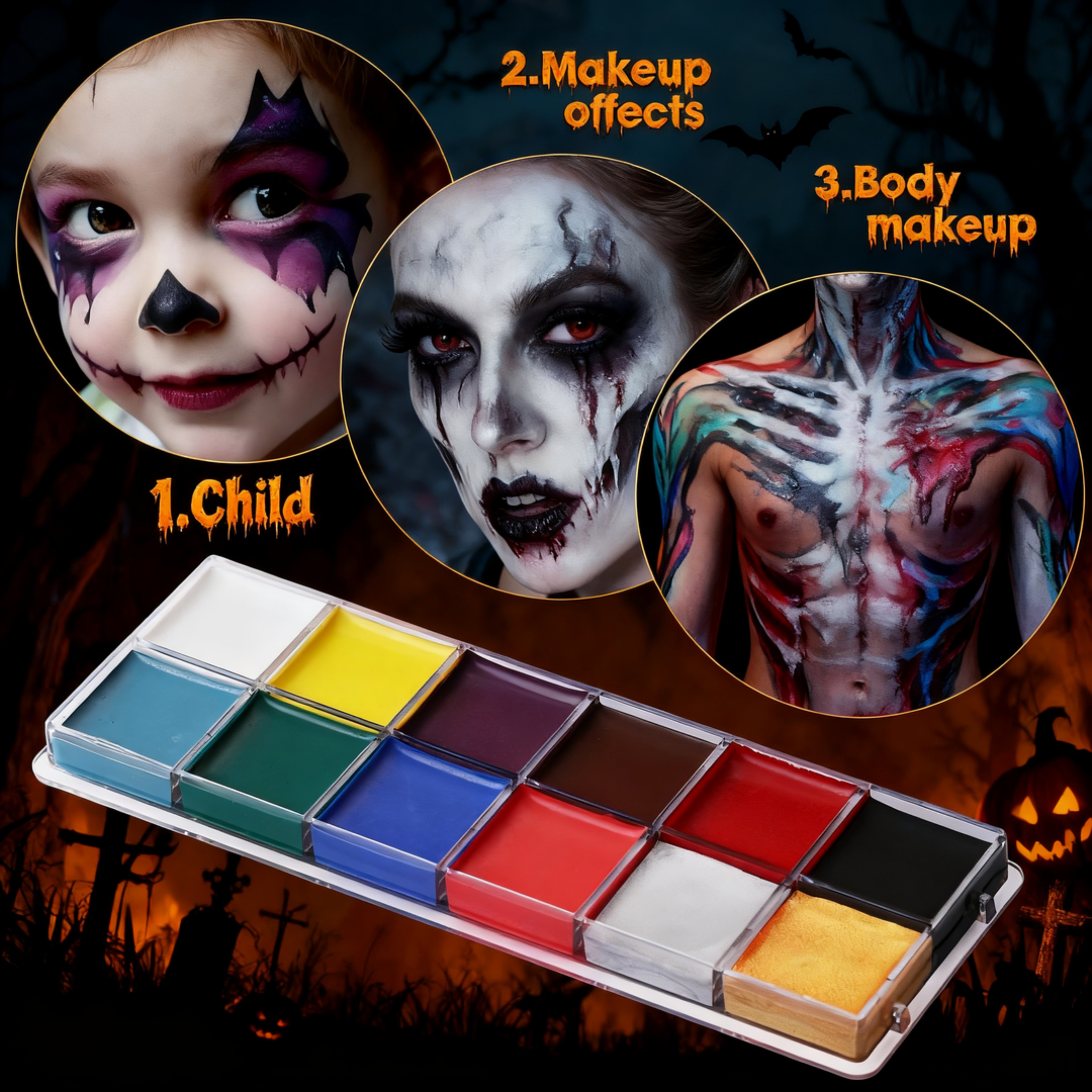 ประกายไฟ ชุดเพ้นท์หน้าร่างกาย,หลากสีที่มีสีสันร่างกายศิลปะจิตรกรรม,เครื่องสําอางแต่งหน้ากันน้ําปลอดสารพิษฮาโลวีนแต่งหน้าเครื่องมือของขว