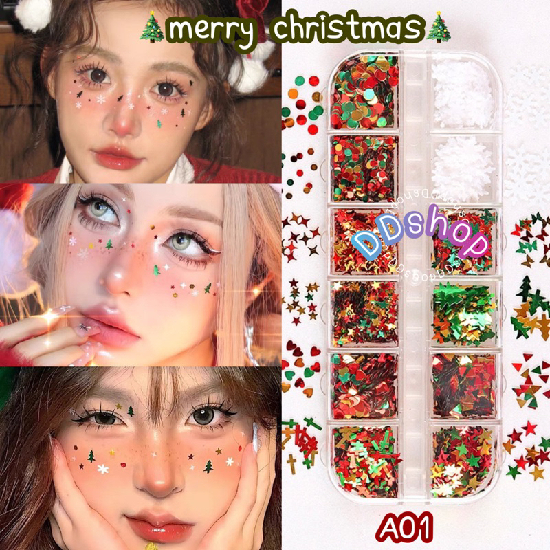 กลิตเตอร์เเต่งหน้าคริสมาสต์ กากเพชรคริสมาสต์ ออกงาน แต่งหน้า ปีใหม่ ปาร์ตี้ แต่งหน้า(เเถมกาวติด) พร้อมส่งในไทย