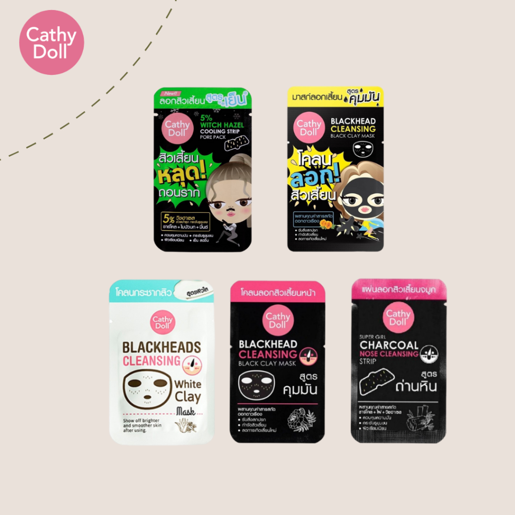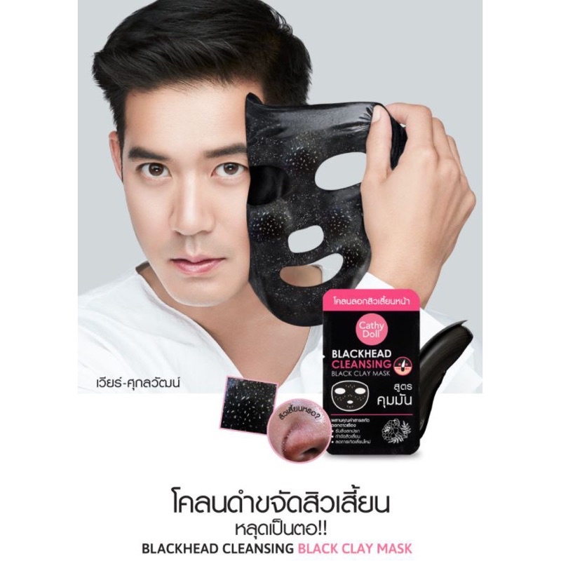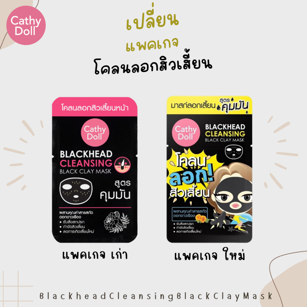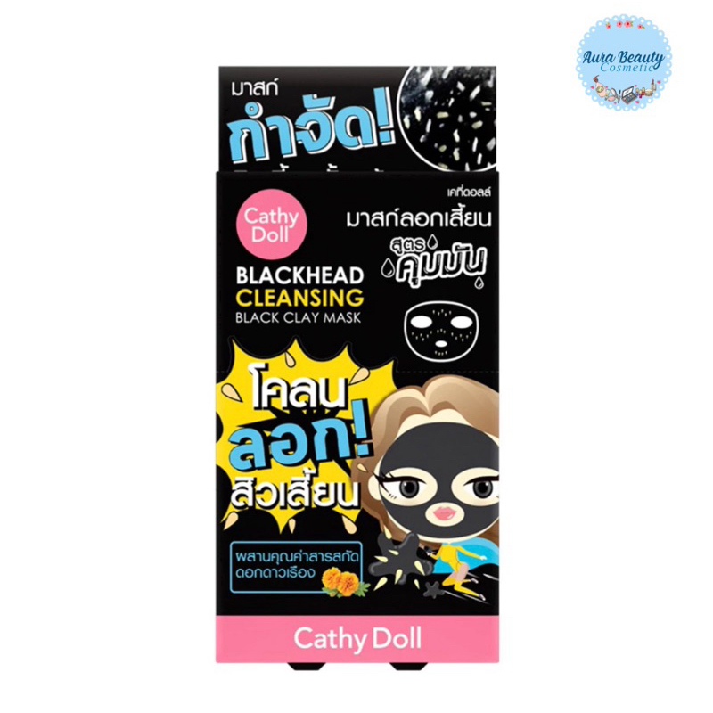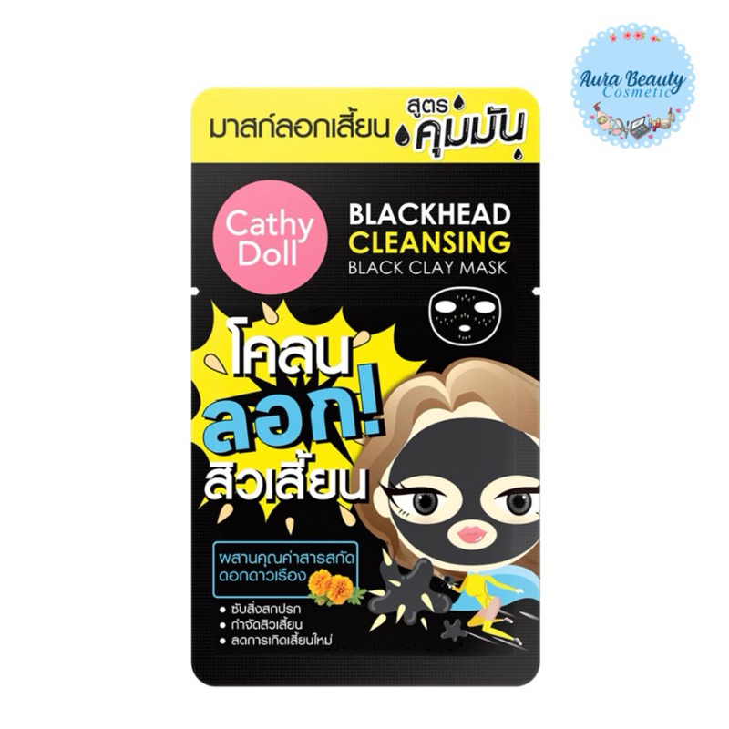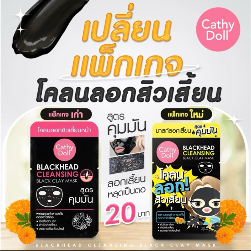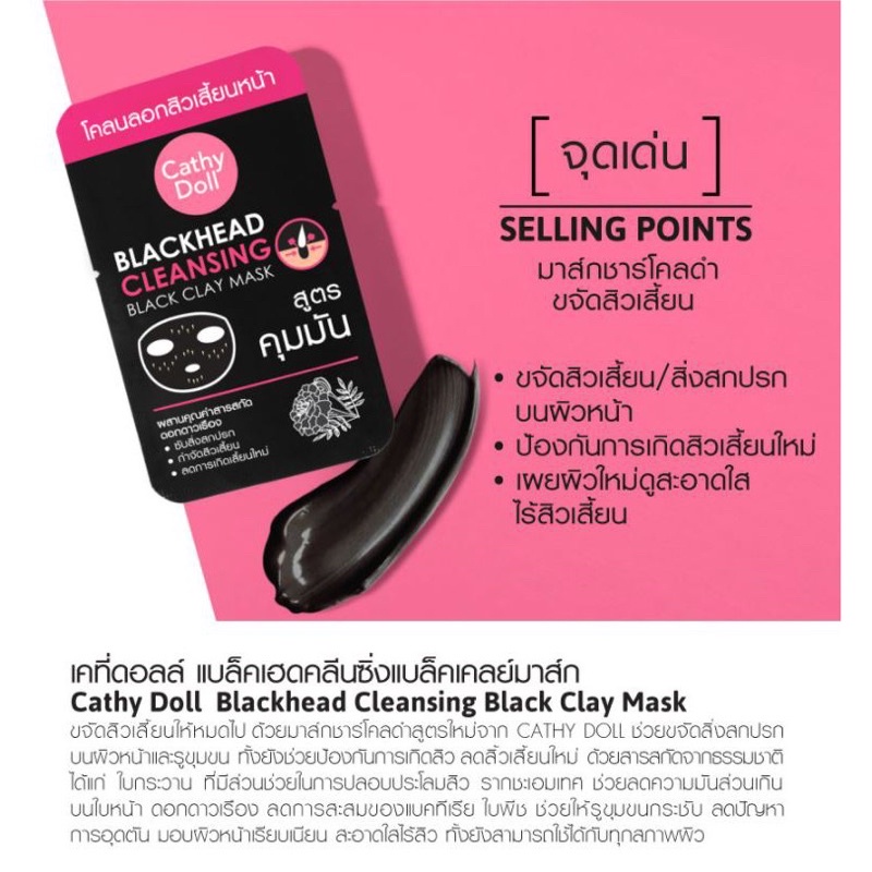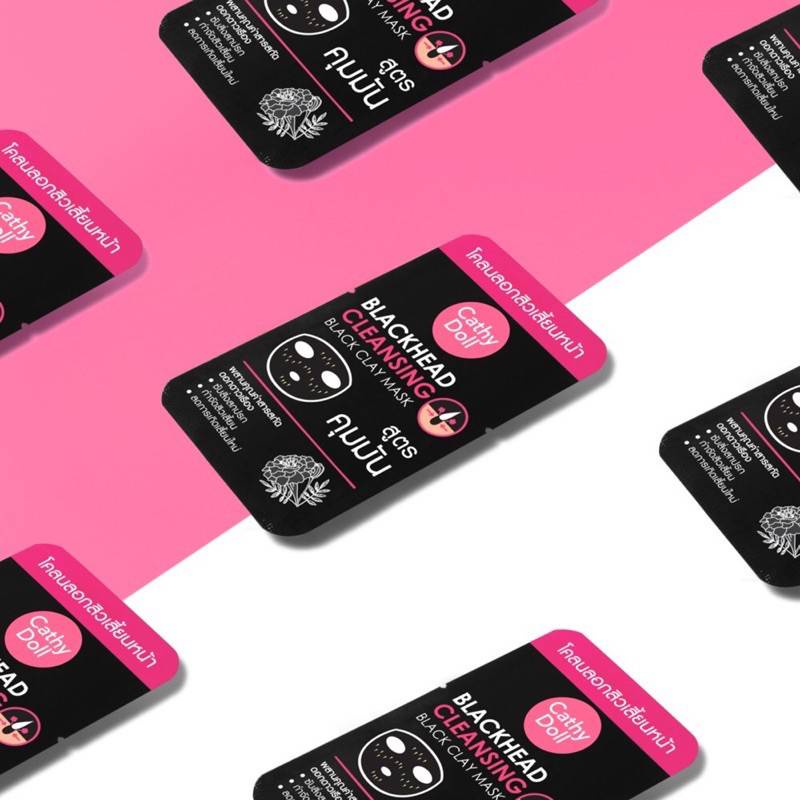 (6ซอง/กล่อง) Cathy Doll Blackheads Cleansing Black Clay Mask 5 g. โคลนกระชากสิว โคลนลอกสิวเสี้ยน มาสก์หน้า คุมมัน โคลนดำ