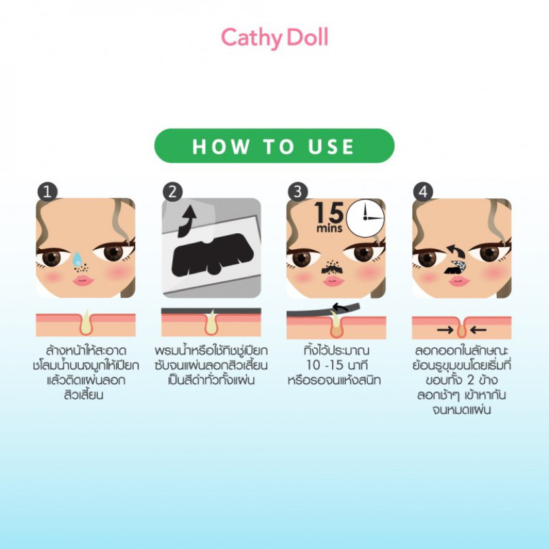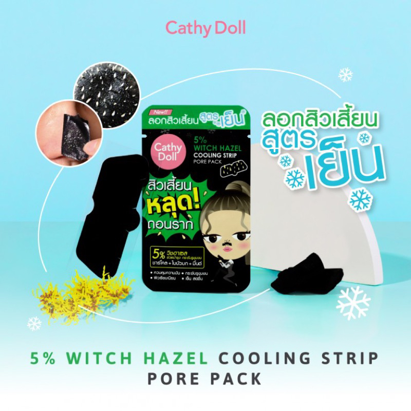 CATHY DOLL ไฟว์เปอร์เซ็นต์วิชฮาเซลคูลลิ่งสตริปพอร์แพ็ค แผ่นลอกสิวเสี้ยนสูตรเย็น