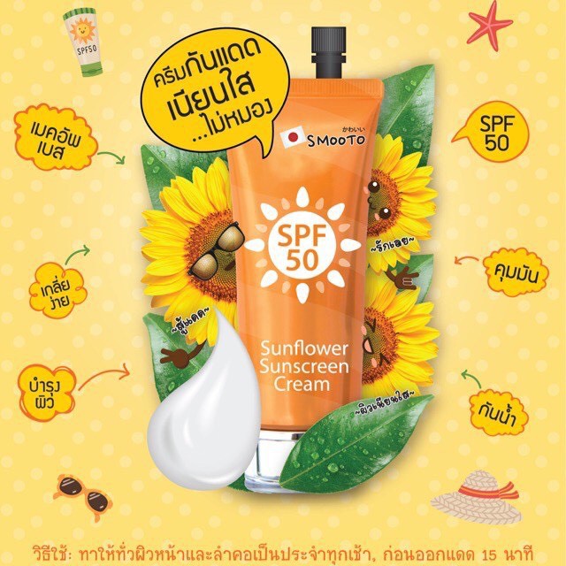 (6ซอง/กล่อง) Smooto Sunflower sunscreen สมูทโตะ ซันฟาวเวอร์ ซันสกรีน ครีม [0658]