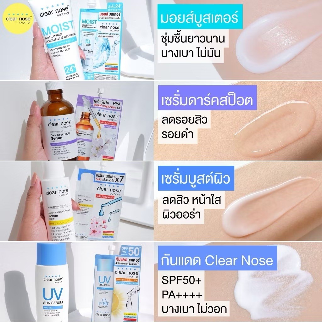 (1ซอง) Clear Nose Cream/Serum/Sunscreen เคลียร์โนส ครีม/เซรั่ม/กันแดด ชนิดซอง