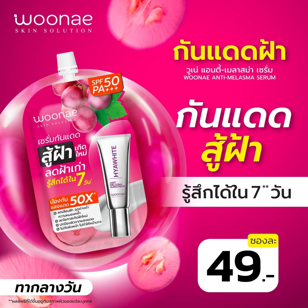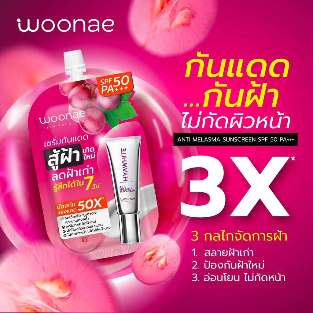 (กล่องx6ซอง) Woonae Anti Melasma Sunscreen SPF50 PA+++ 10g วูเน่ เซรั่มกันแดด ลดฝ้า