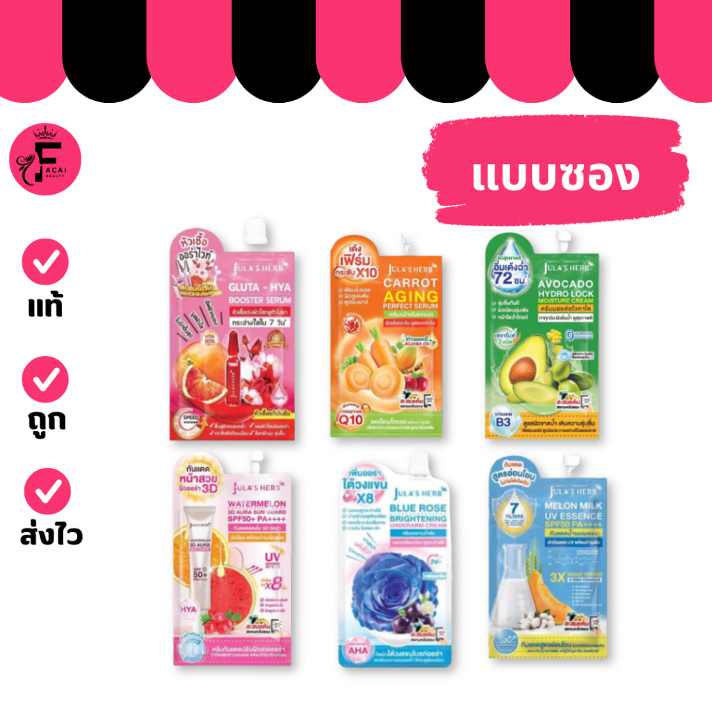 (1 ซอง) Jula’s Herb จุฬาเฮิร์บหัวเชื้อไฮยา/ เซรั่มแครอท/มอยส์อโวคาโด/กันแดด/ครีมกุหลาบ 6/7/8/10 กรัม