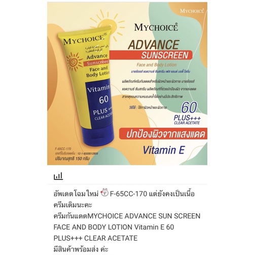 กันแดดมายช้อยส์ ครีมกันแดด MYCHOICE SPF vitamin E 60 PA+++ 150g ครีมกันแดดมายช้อยส์ สำหรับผิวหน้าและผิวกาย