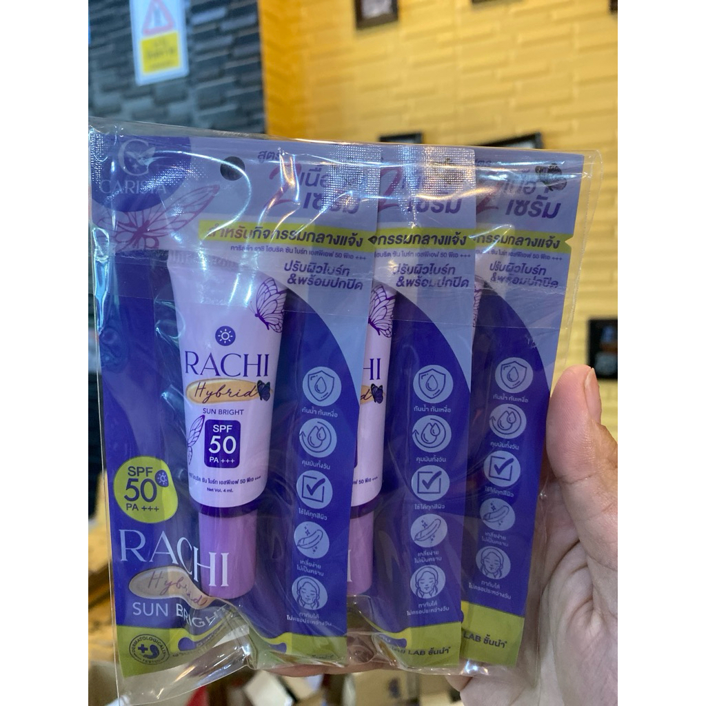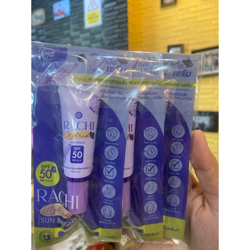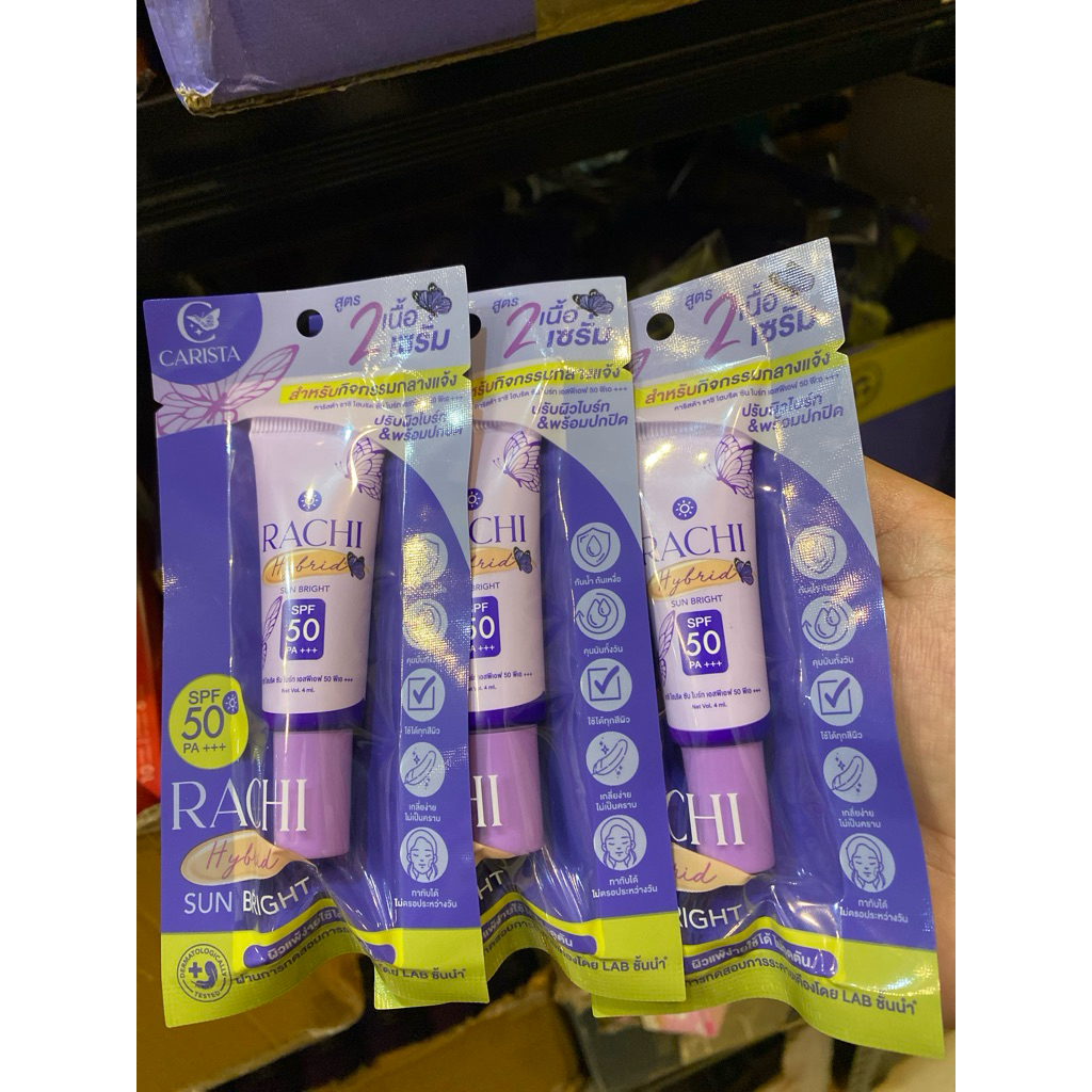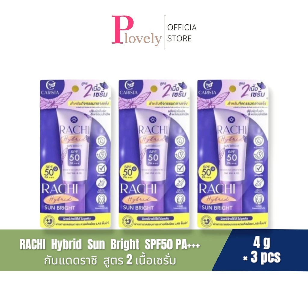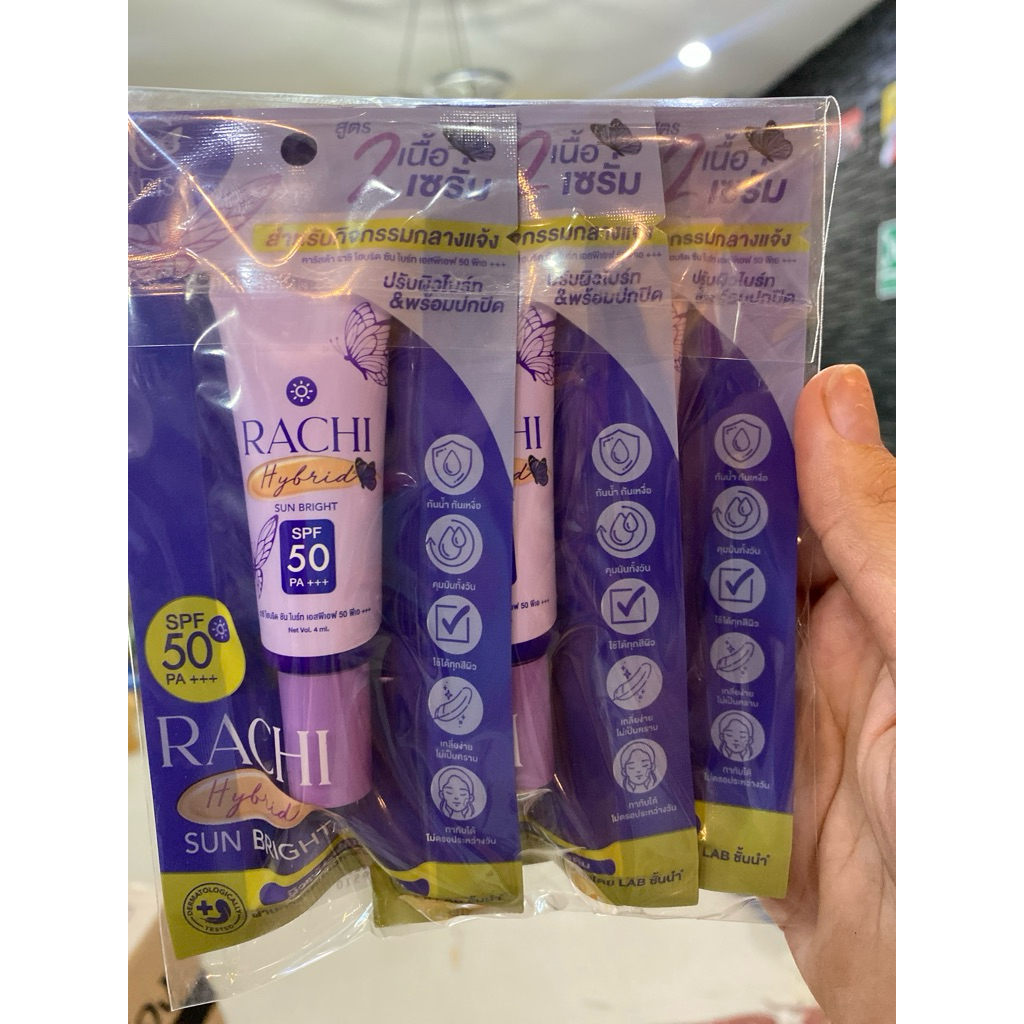 กันแดดราชิ สูตร 2 เนื้อเซรั่ม (ได้ 3 ชิ้น) RACHI Hybrid Sun Bright SPF 50 PA+++ 4 ml. กันแดดหน้า