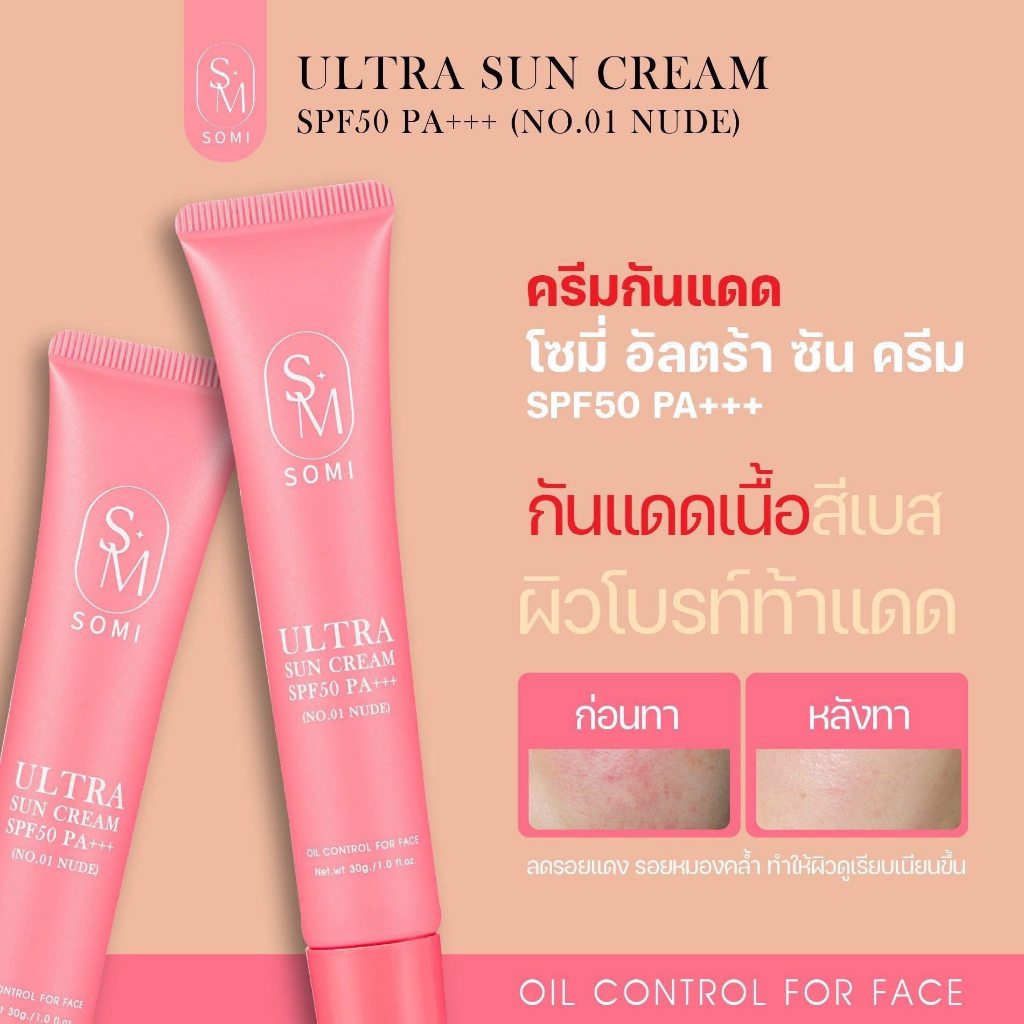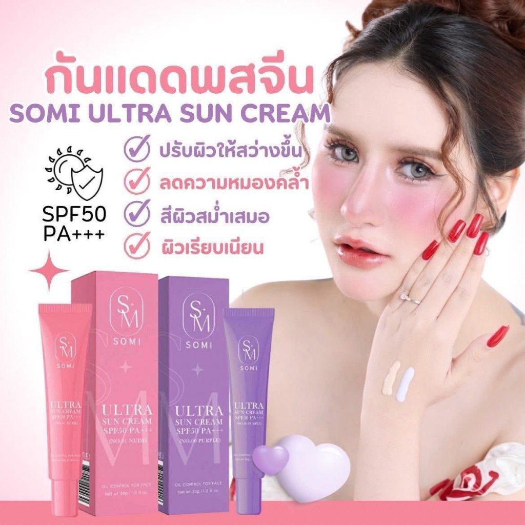 กันแดดซ้อจอย กันแดด Somi ((SM)) SPF50 PA+++ ultra sun cream 30 g.