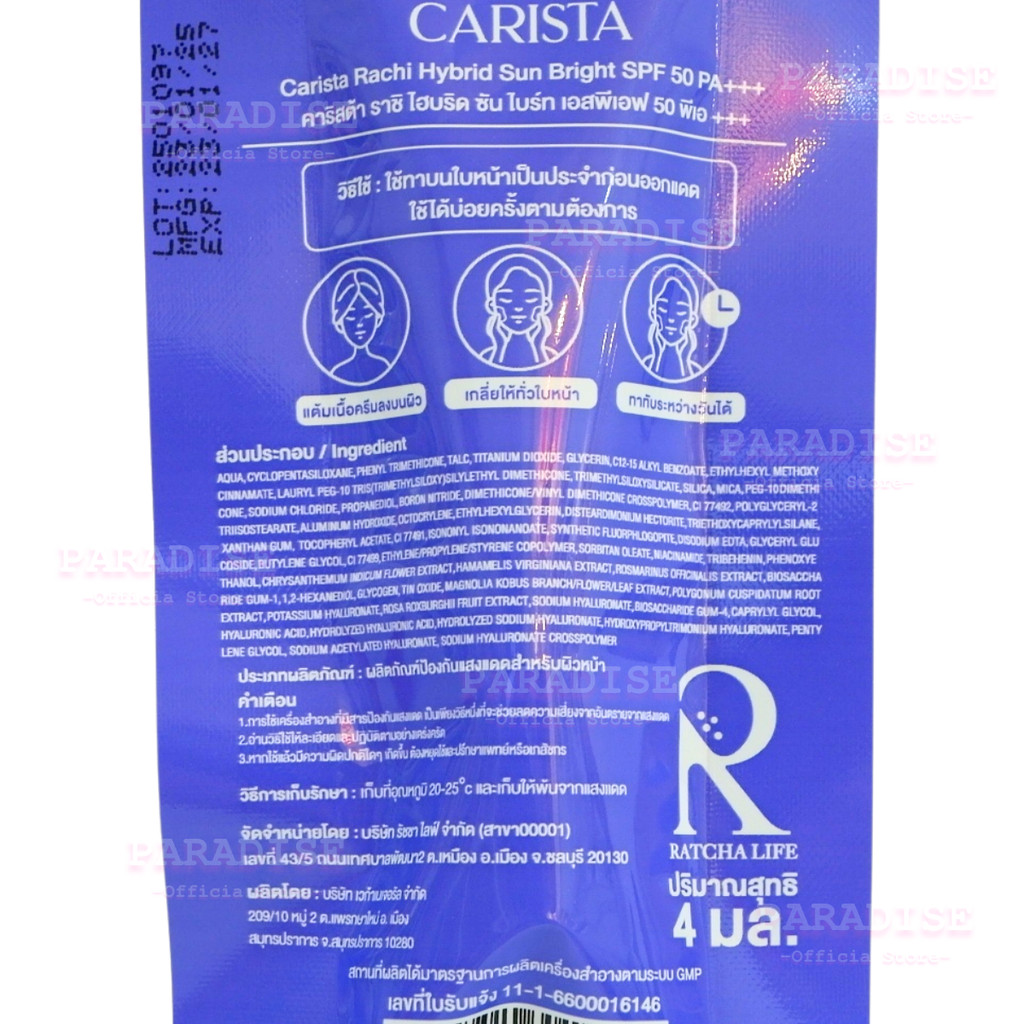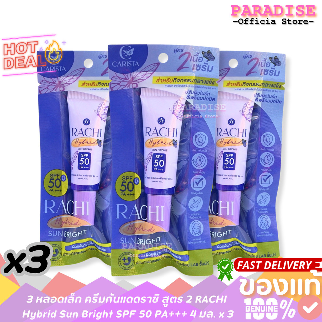 โปรโมชั่น 3 หลอด ครีมกันแดดราชิ สูตร 2 RACHI Hybrid Sun Bright SPF 50 PA+++ 4 มล.x3 ชิ้น
