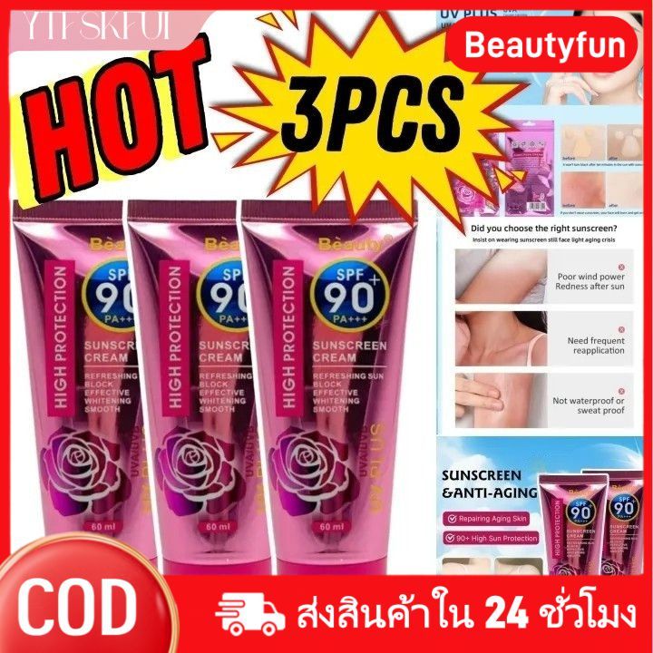 ✅COD 【สินค้าในพื้นที่】ซื้อ 1 แถม 2 ครีมกันแดด SPF90+++ ปกป้องสูง ต่อต้านรังสีอัลตราไวโอเลต โลชั่นไวท์เทนนิ่งไม่เหนียวเหนอะหนะ ให้ความชุ่มชื้น บำรุงผิวหน้า
