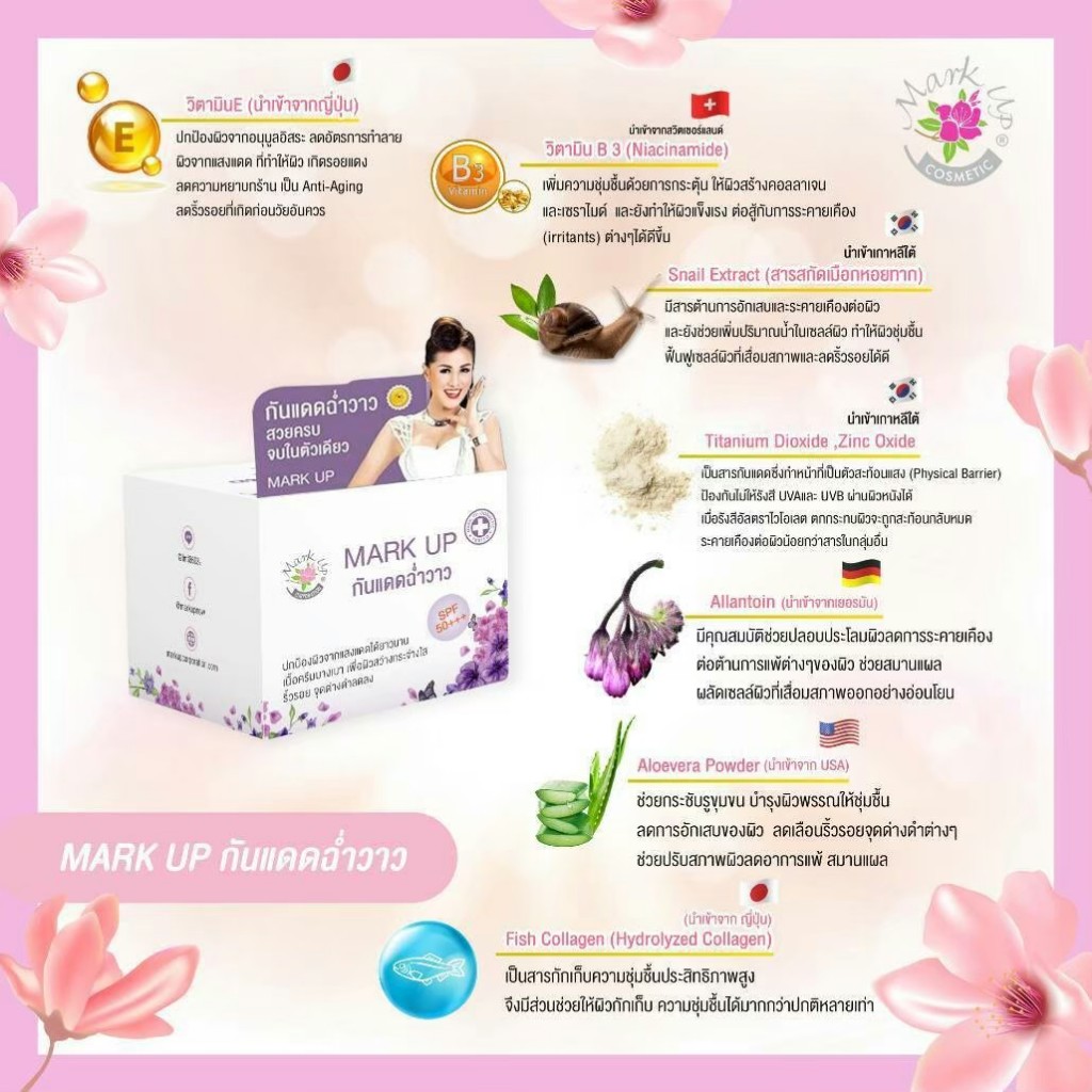 🦜[ของแท้] กันแดด ฉ่ำวาว มาร์คอัพ Mark Up เนื้อนาโน กันน้ำ กันเหงื่อ SPF50 PA+++ 10g.