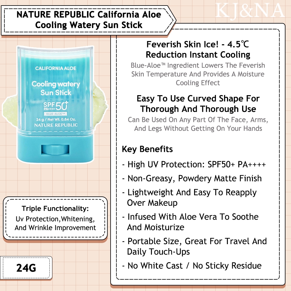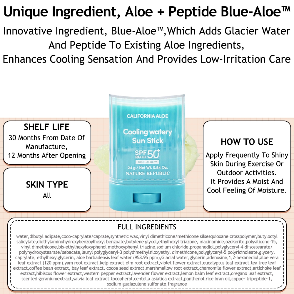 [Nature Republic] California Aloe Fresh/Cooling Watery Powdery SunStick 24g SPF50+ PA++++ ครีมกันแดด Protection