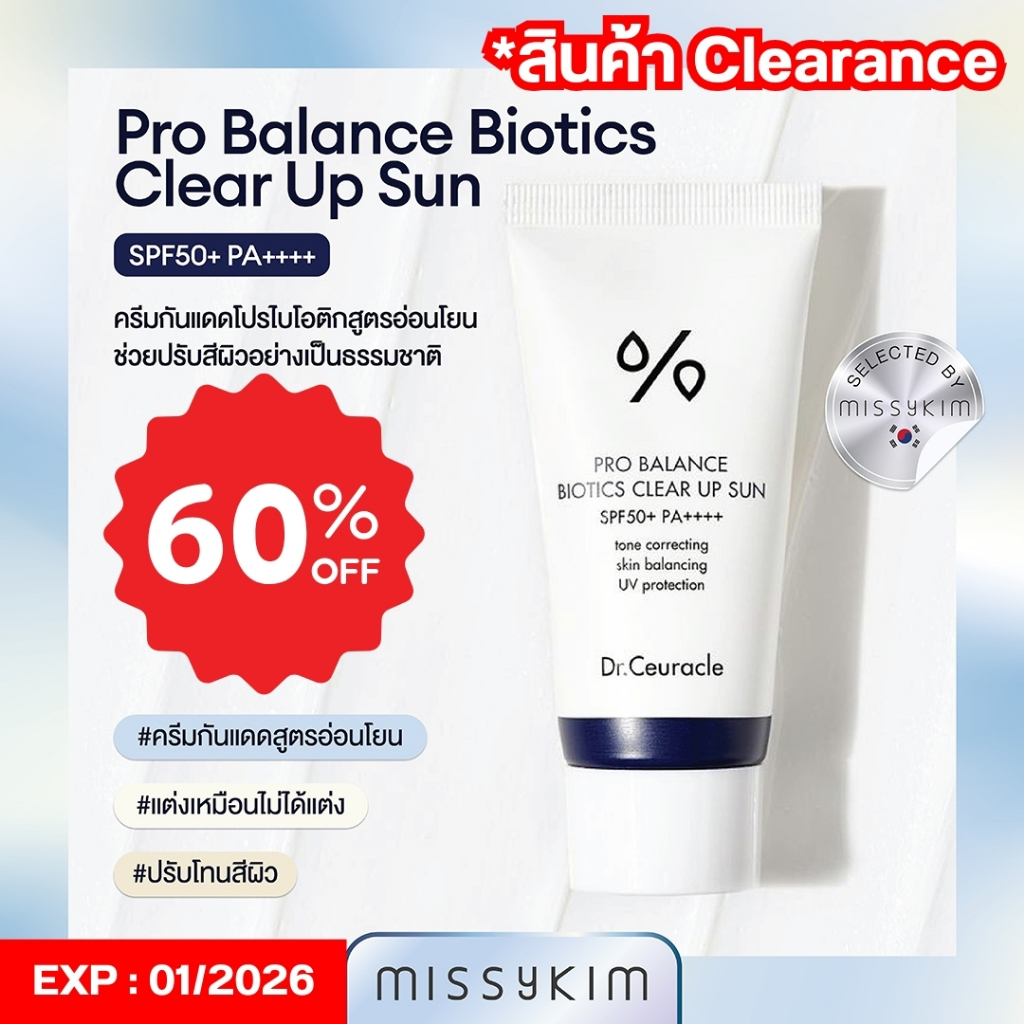 [MISSYKIM][CLEARANCE][EXP.01/26] Dr.Ceuracle – Pro Balance Biotics Clear Up Sun SPF50+ PA++++ 50ml กันแดดโปรไบโอติกส์