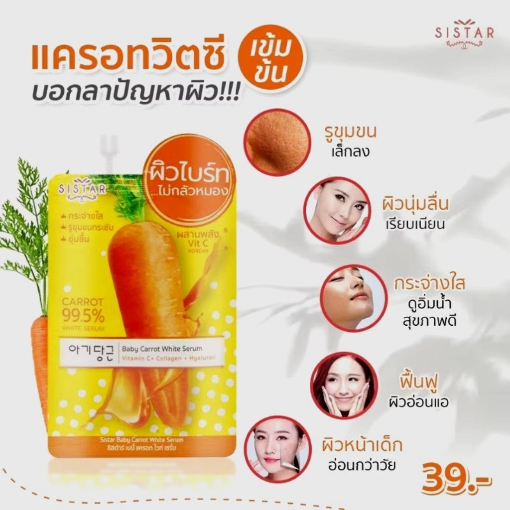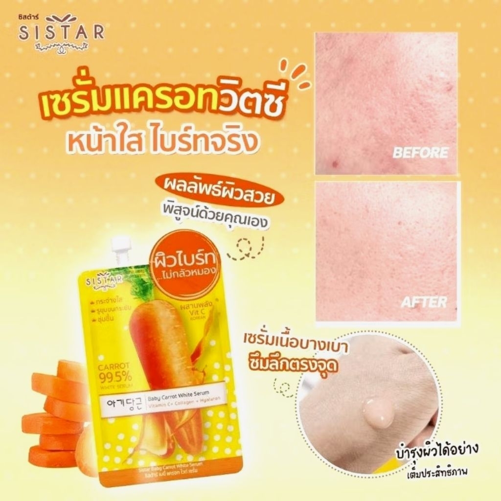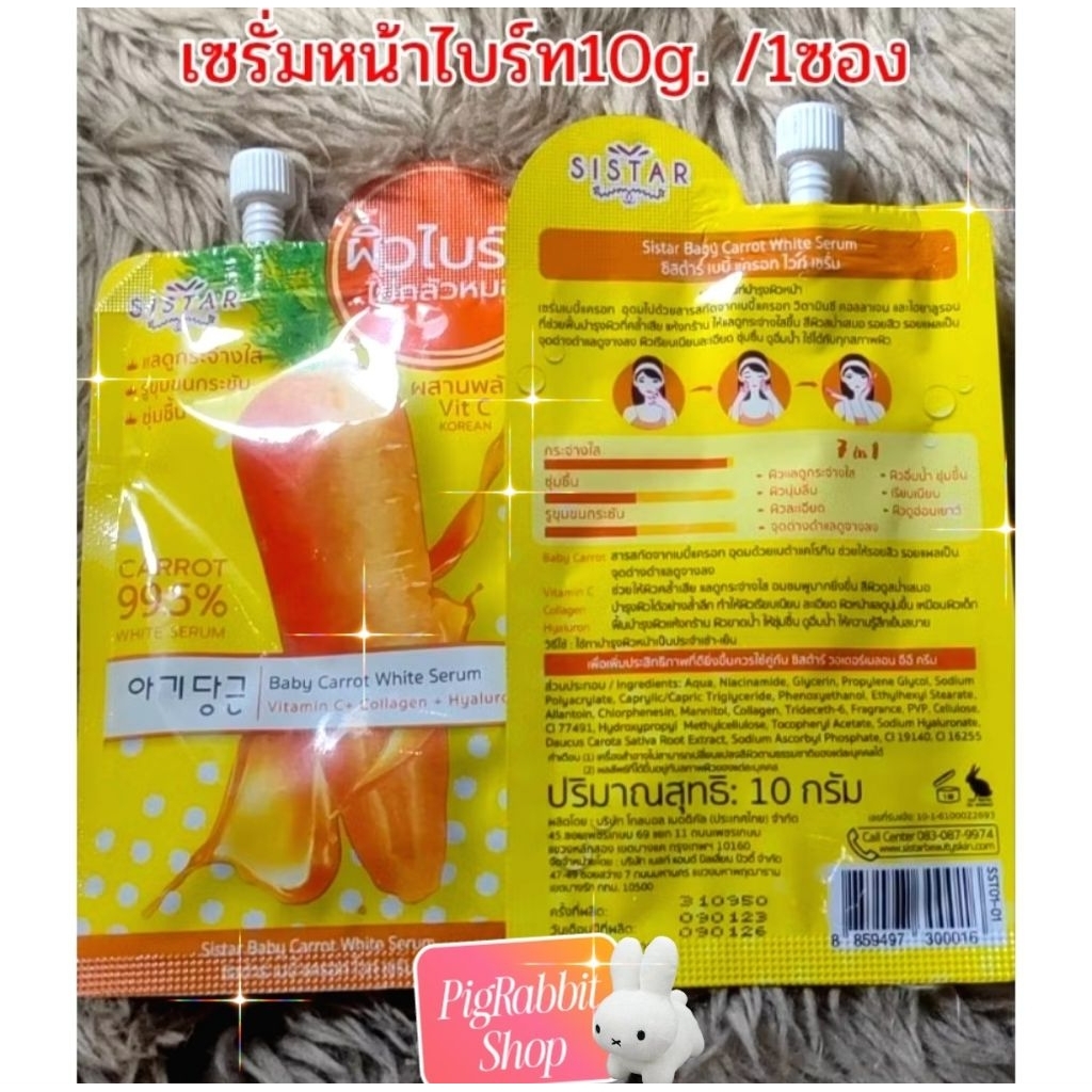Exp 01/2026💧เซรั่มหน้าไบร์ท Sistar ซิสต้าร์ Baby Carrot White Serum เบบี้ แครอท ไวท์ เซรั่ม 10g