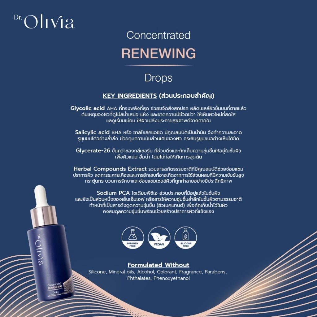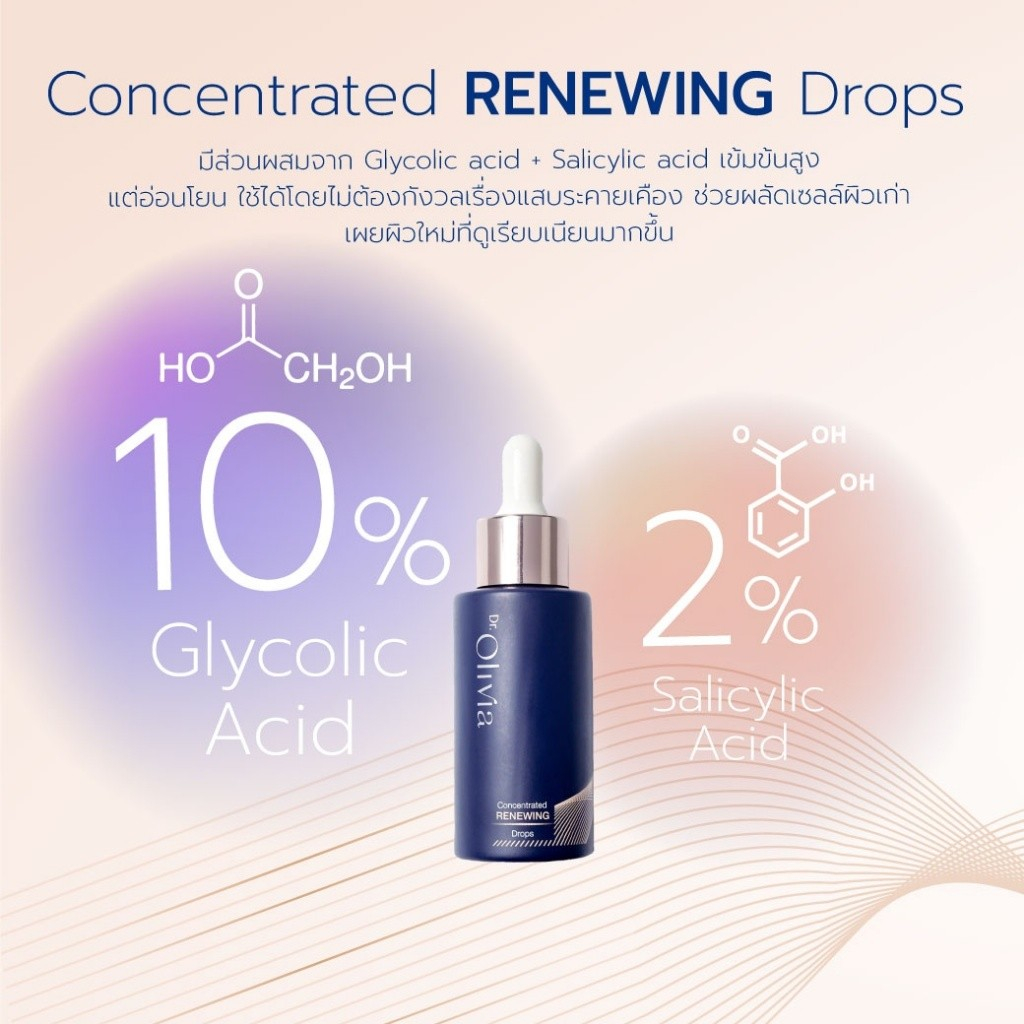 Dr.Olivia Concentrated Renewing Drops 3 ml. (AHA+BHA ผลัดเซลล์ผิวเก่า ผิวเรียบเนียน ของแท้ 100 % by oum olivia