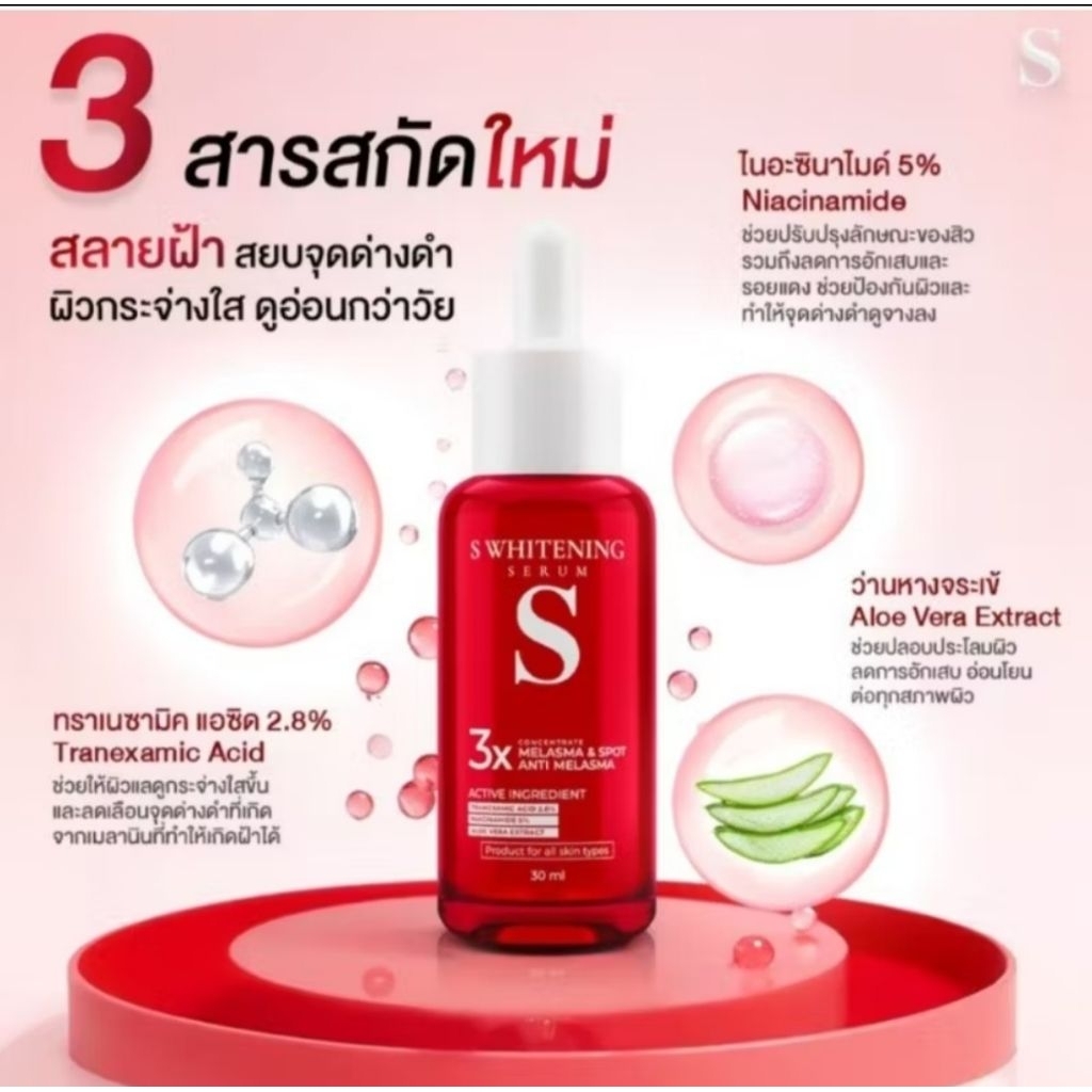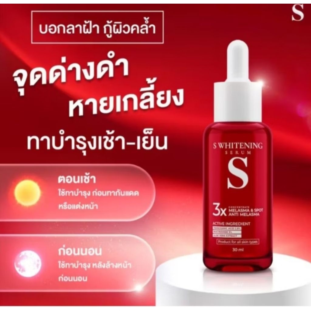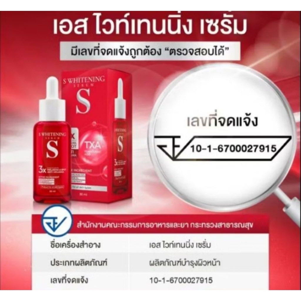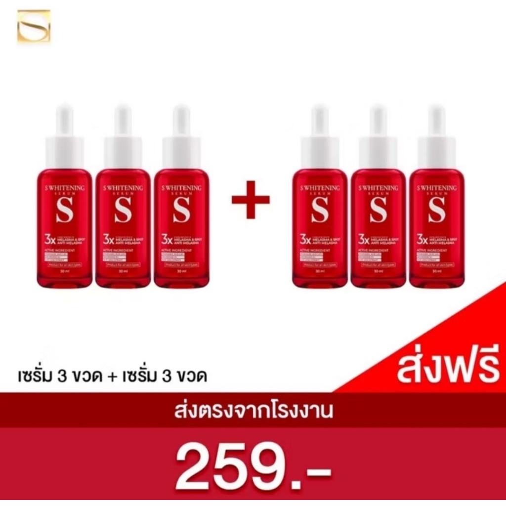 (ส่งฟรี)เอสไวท์เทนนิ่งเซรั่มของเเท้💯%(โปรโมชั่น3ขวดเเถม3ขวด)S Whitcning Serumจัดส่งทุกวัน