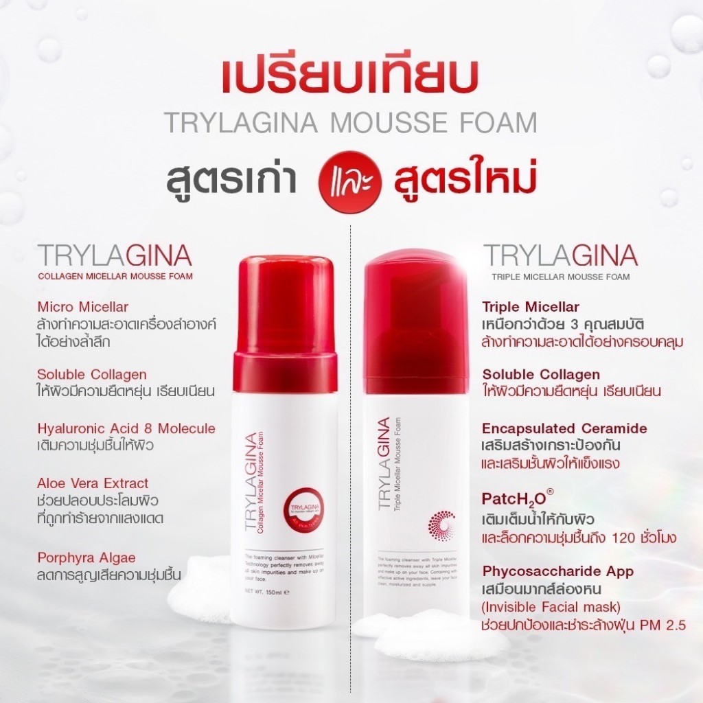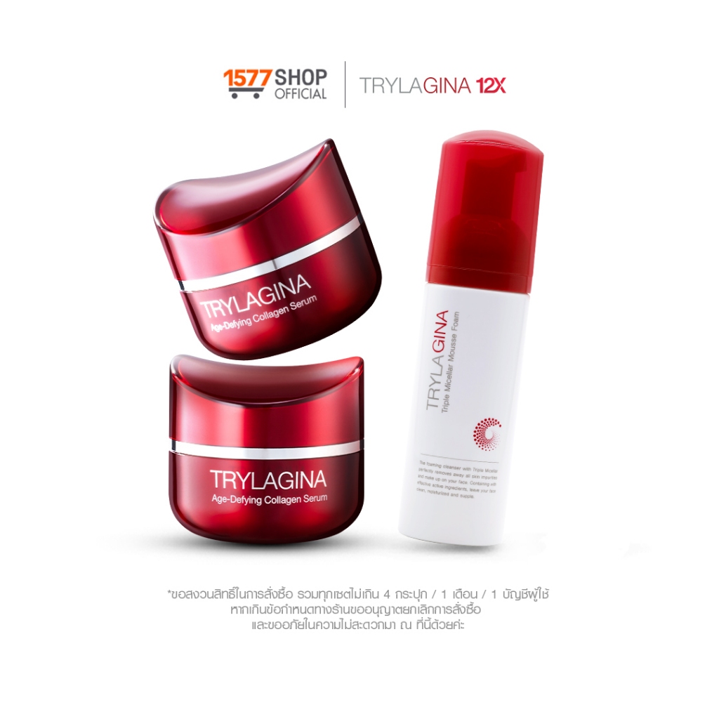 [2ฟรี1]Trylagina 12X Collagen Serum ไตรลาจิน่า 12X เซรั่มคอลลาเจน 30ก. x2 + โฟมล้างหน้า 150มล. x1
