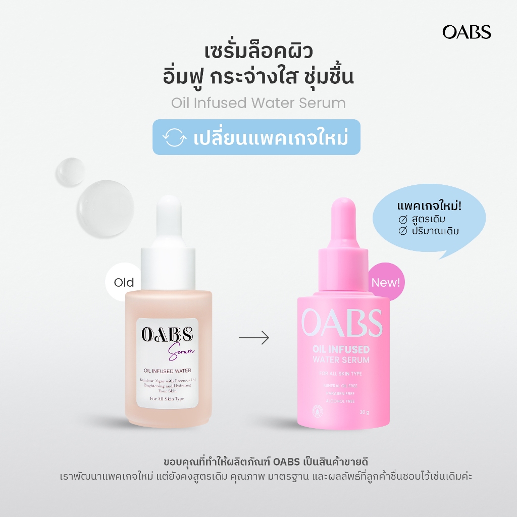 [2 ชิ้น] OABS เซรั่มออยล์บำรุงผิว Oil Infused Water ออยล์บำรุงผิว เติมน้ำให้ผิว ปรับผิวกระจ่างใส