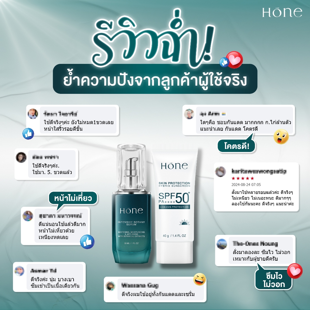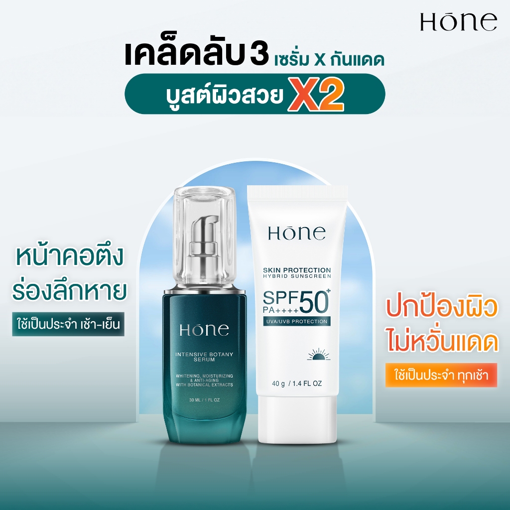 [3 แถม 3] โฮนเซรั่ม 3 ชิ้น 30 (ml.) ฟรี โฮน กันแดด ไฮบริด SPF 50+ PA++++ 3 ชิ้น 40 (ml.)