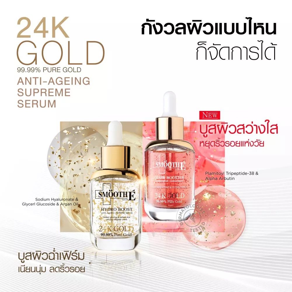 [เซรั่มขายดีอันดับ 1] Smooth E Double Gold & Glow Serum Set เซ็ตลดเลือนริ้วรอยร่องลึก 10 ปี ลดฝ้าแดดสะสมใน 4 สัปดาห์