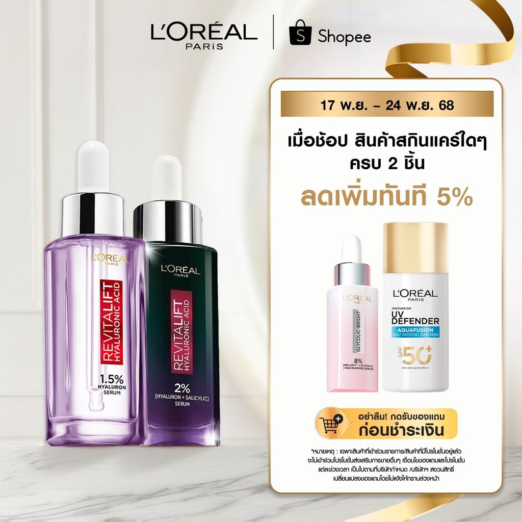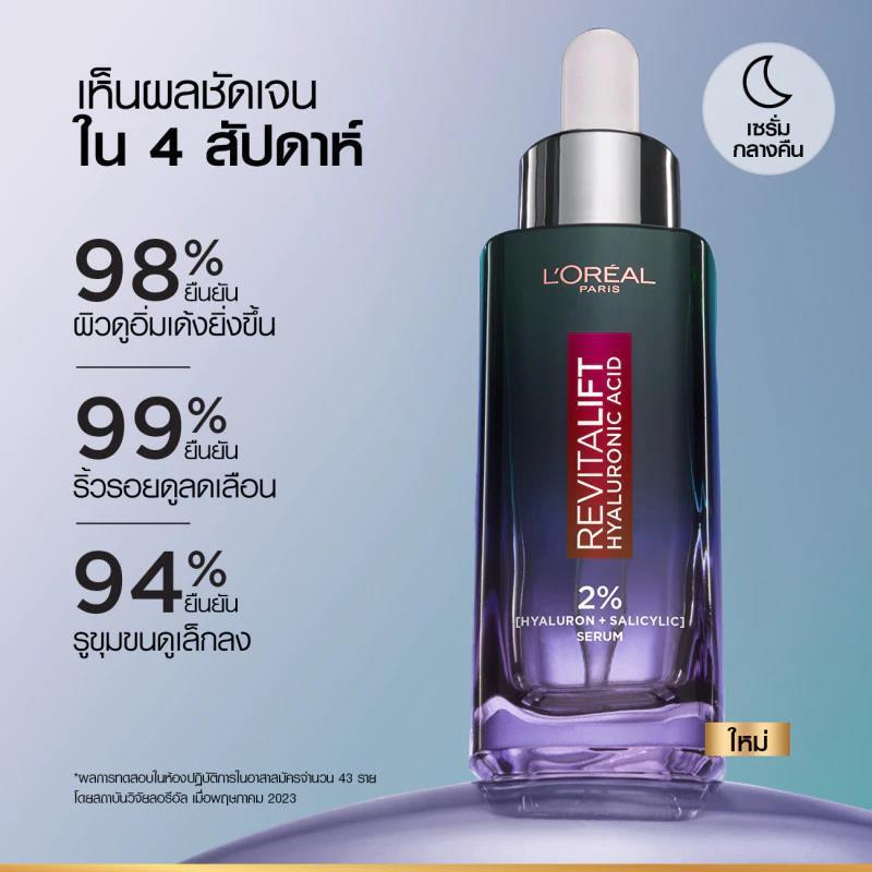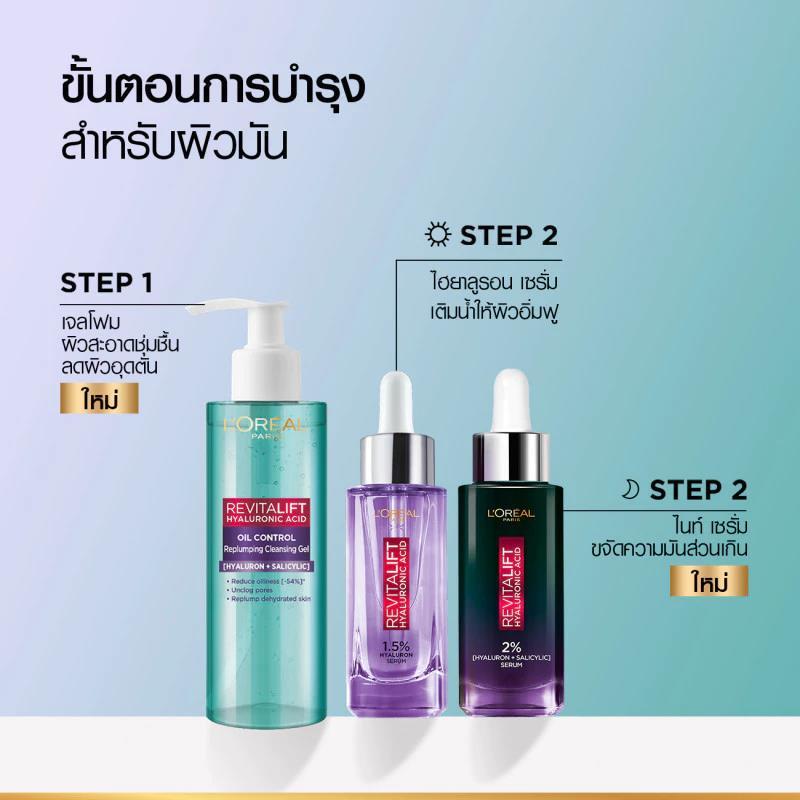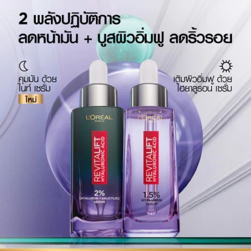 [แพ็กคู่เซรั่มไฮยา] ลอรีอัล ปารีส L’Oreal Paris Revitalift Hyaluronic Acid Serum 30ml + Oil Control Night Serum 30ml