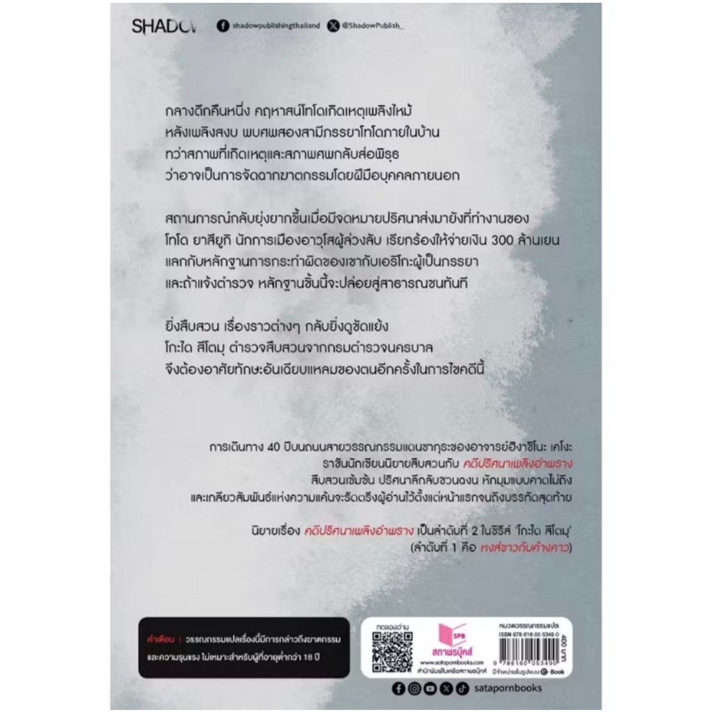 สถาพรบุ๊คส์ออนทัวร์ คดีปริศนาเพลิงอำพราง โดย ฮิงาชิโนะ เคโงะ : เขียน; สุรีรัตน์ งามสง่าพงษ์ : แปล มือหนึ่ง