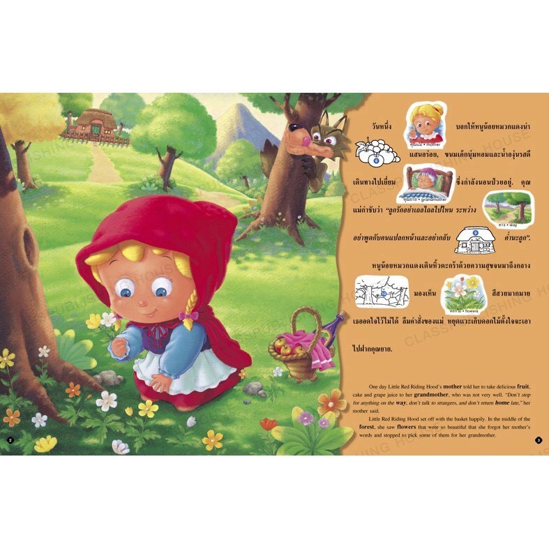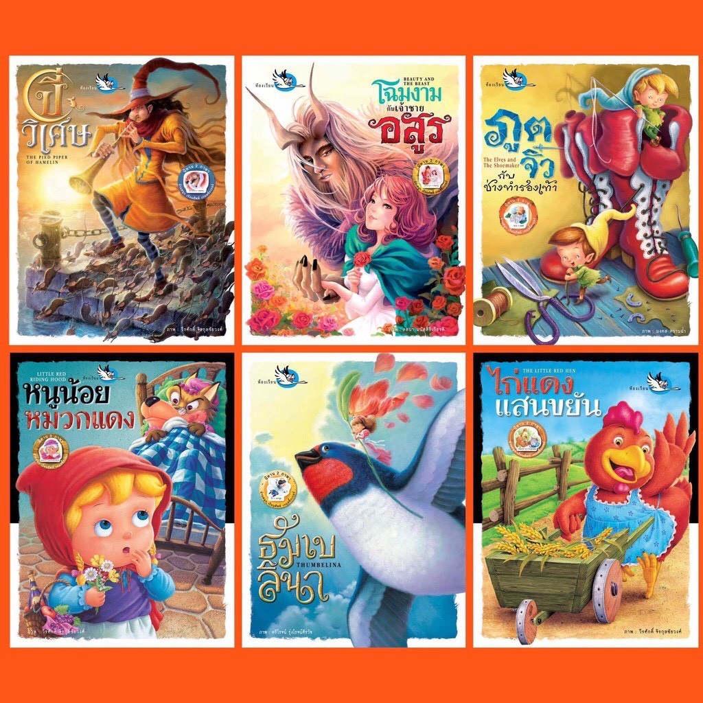 PCR ชุดหนังสือนิทานสติ๊กเกอร์ 2 ภาษา ไทย-อังกฤษ 6 เล่ม หนูน้อยหมวกแดง ไก่แดงแสนขยัน