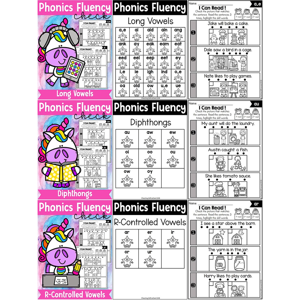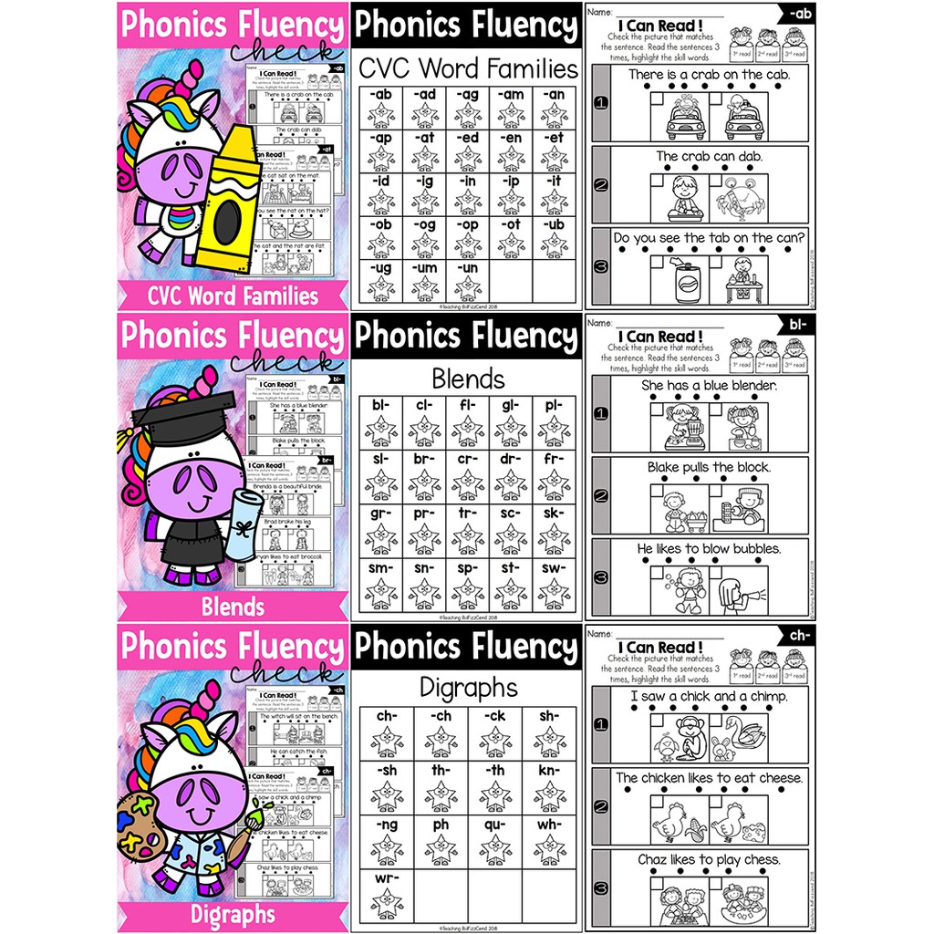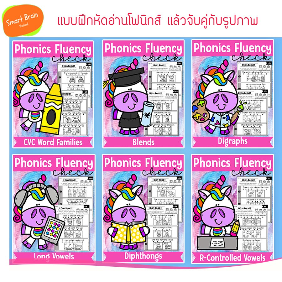 *ส่งทุกวัน* Worksheet Phonics Fluency Read and Match ชุด 6 เล่ม ขนาด A4 109 หน้า