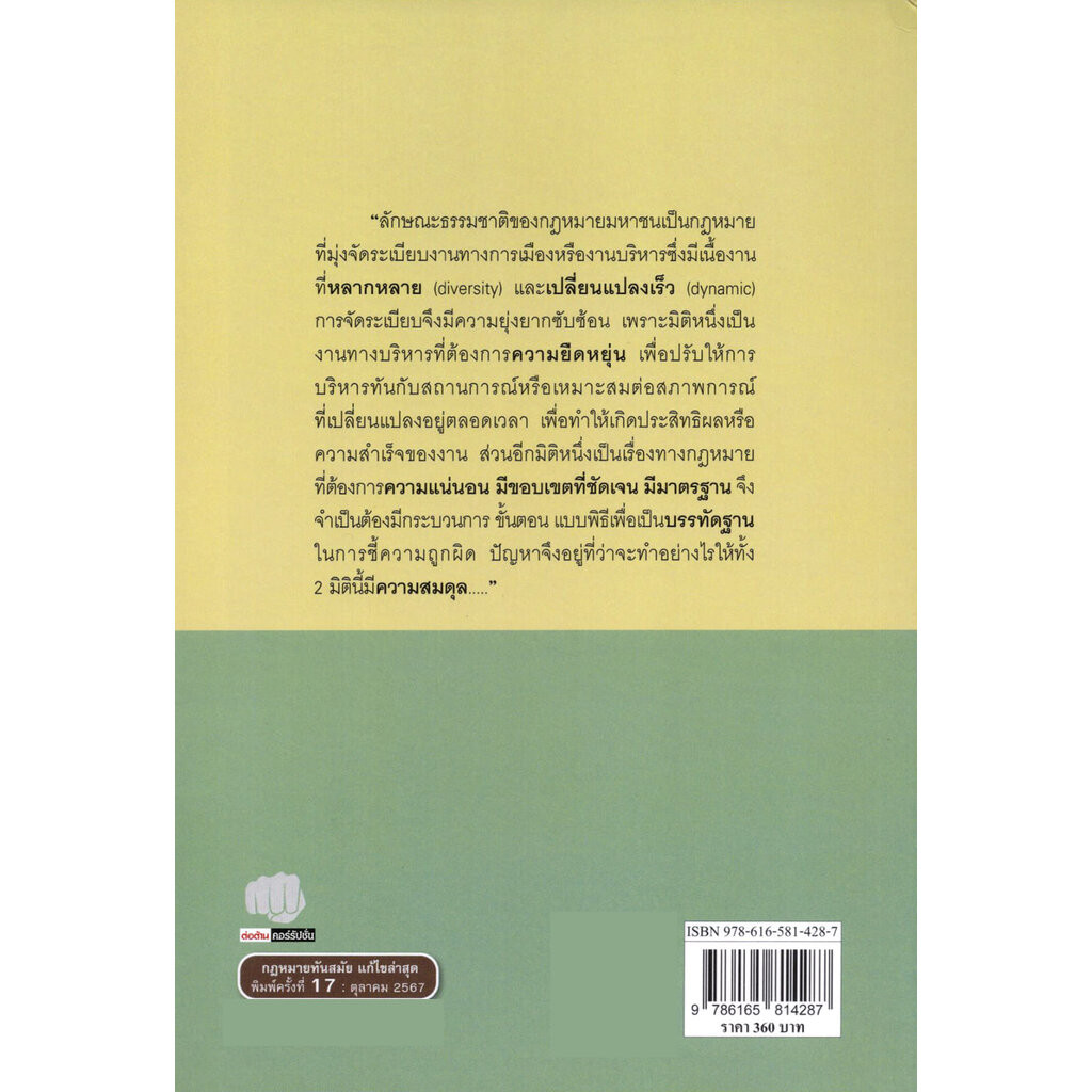 (แถมฟรีปกใส) หลักกฎหมายมหาชนเบื้องต้น พิมพ์ครั้งที่ 17 สมยศ เชื้อไทย TBK0851 sheetandbook
