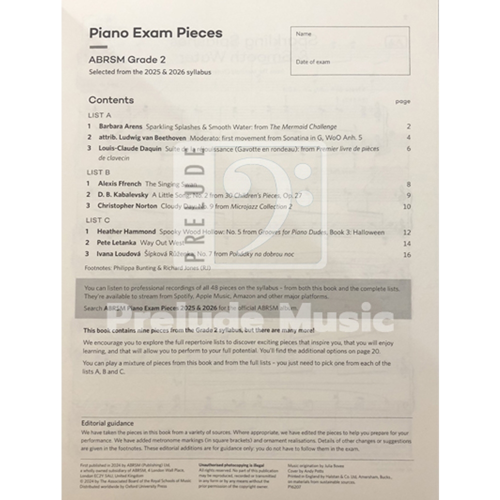 NEW Piano Exam Pieces 2025 & 2026, ABRSM Grade 2 (9781786016072)