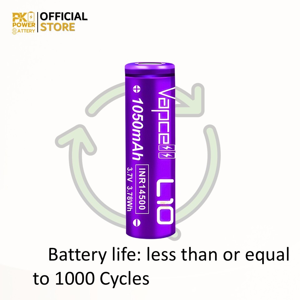(2 ก้อน) ถ่านชาร์จ Vapcell L10 INR14500 1050mAh 10A สีม่วง
