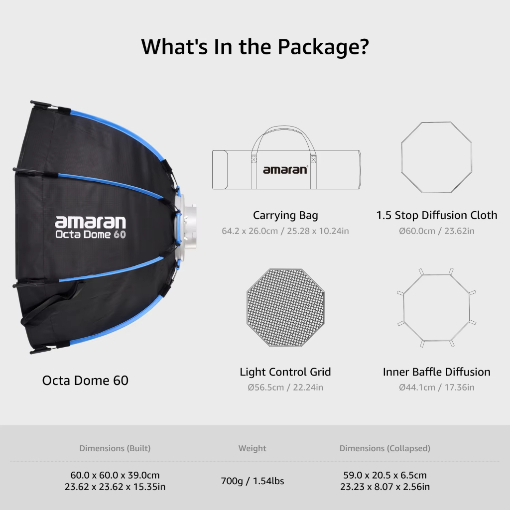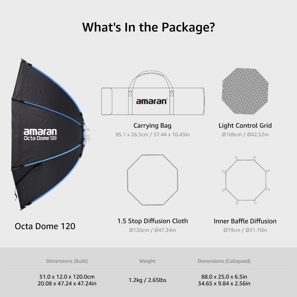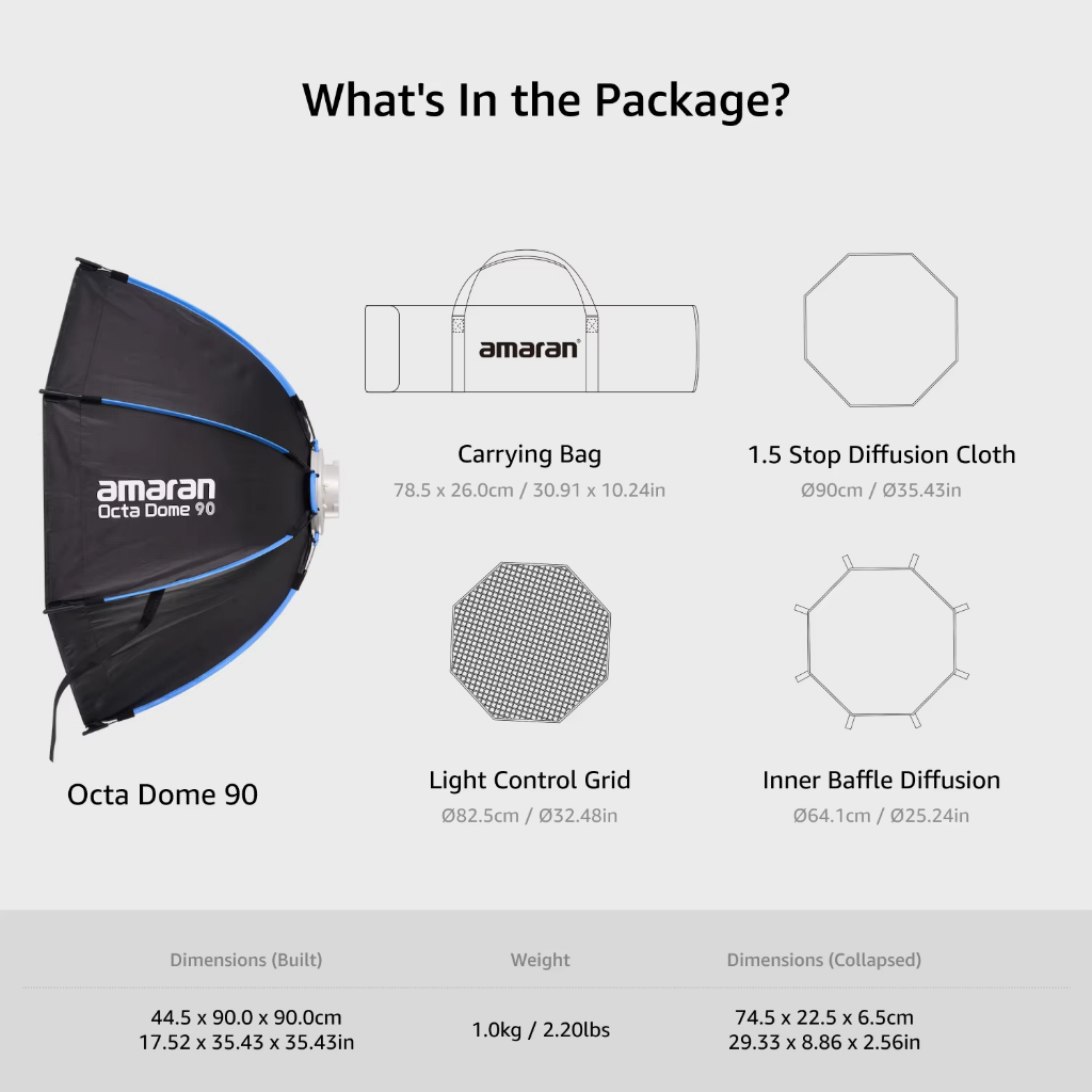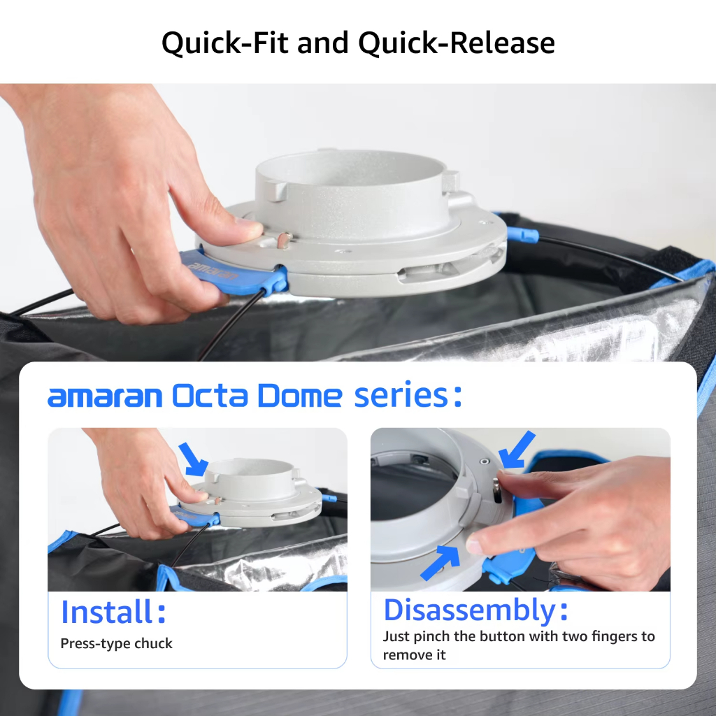 Apture amaran Octa Dome 60 90 120 ซอฟท์บ็อกซ์แบบปลดเร็วแบบพับได้สําหรับสัมภาษณ์ภาพและการถ่ายภาพมือถือ