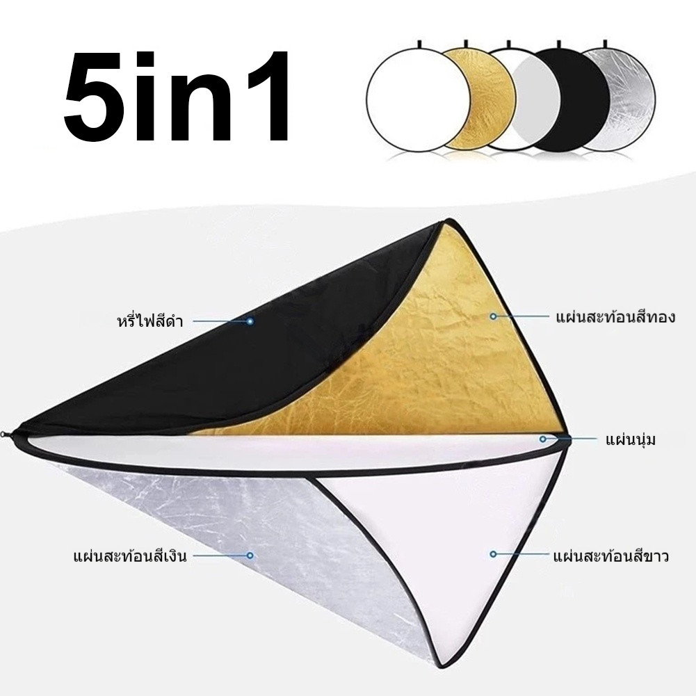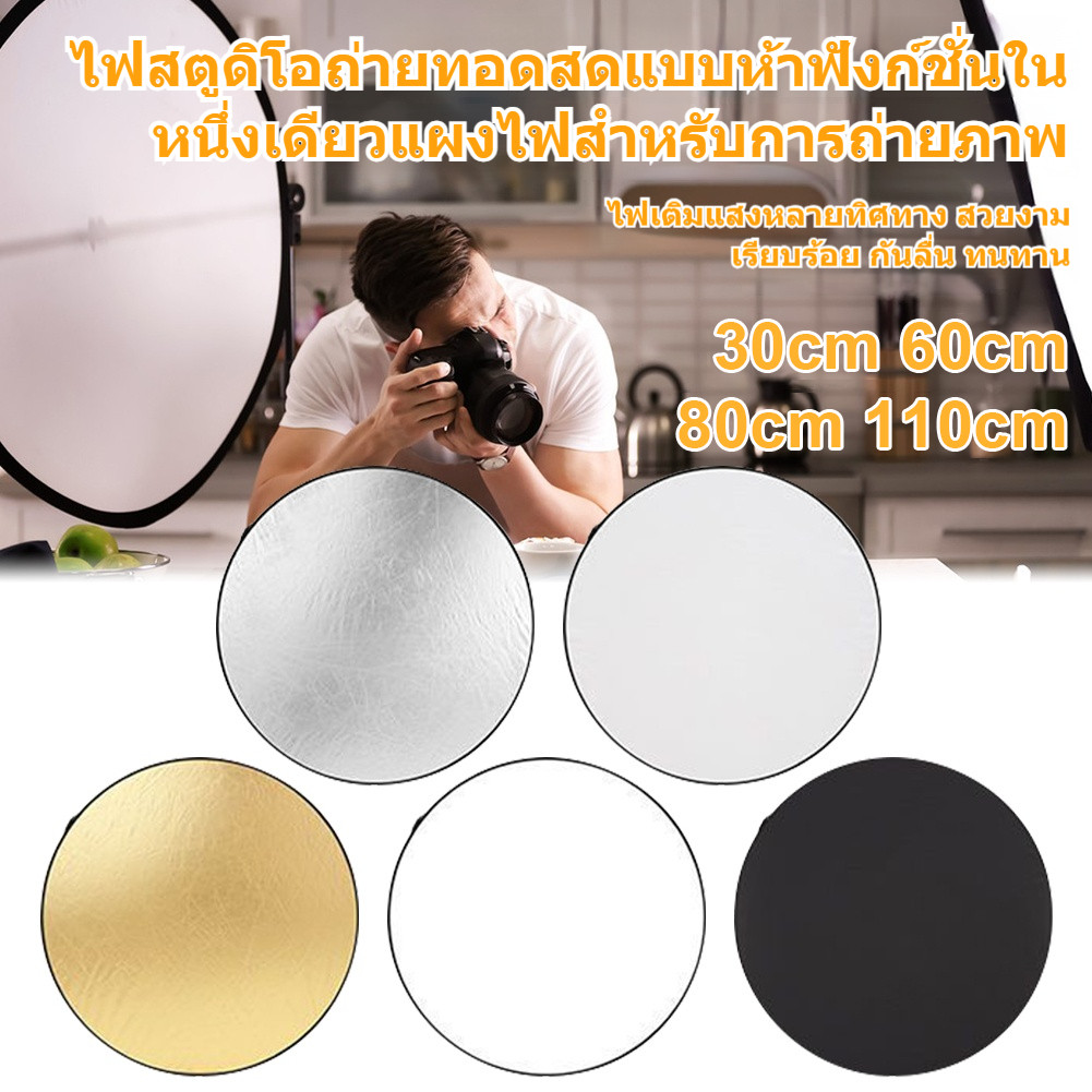 30cm/60cm/80cm/110cm พับได้ รีเฟล็กซ์(Reflector) มีหลายขนาด แผ่นสะท้อนแสง 5 in 1 พร้อมซองใส่
