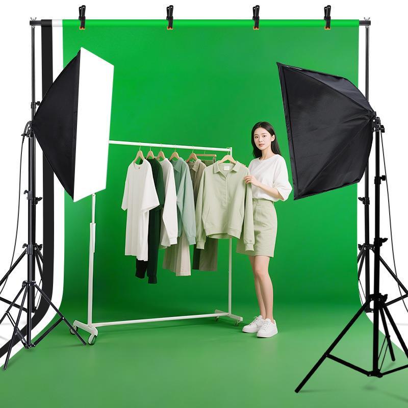 85W/300W ไฟไลฟ์สด Softbox ไฟถ่ายรูป ไฟสตูดิโอ & ฉากถ่ายรูป 2x2m ผ้าฉากหลัง 2x3m Green Screen Photo Studio Lighting Kits